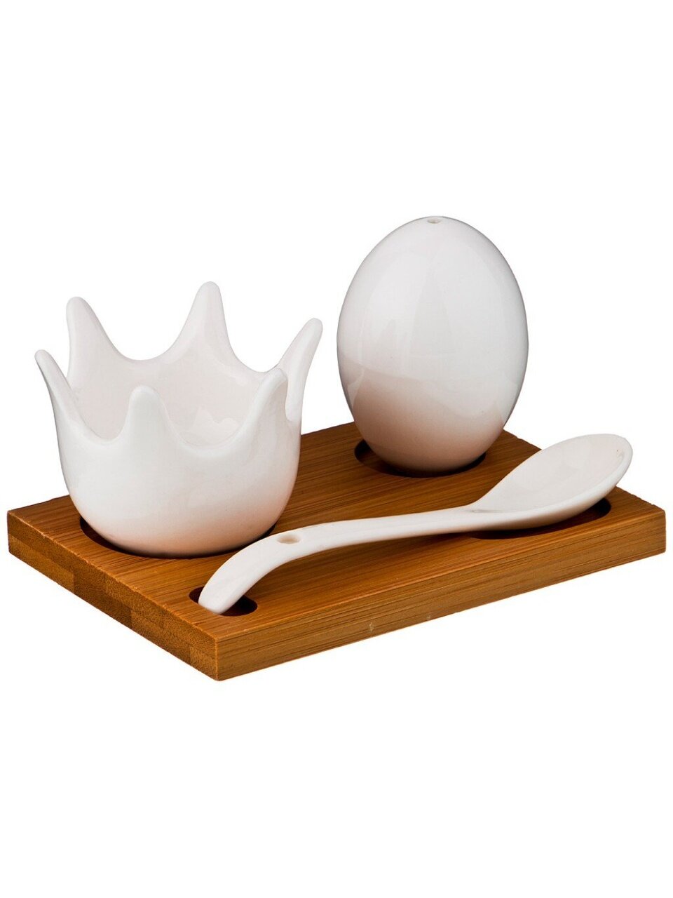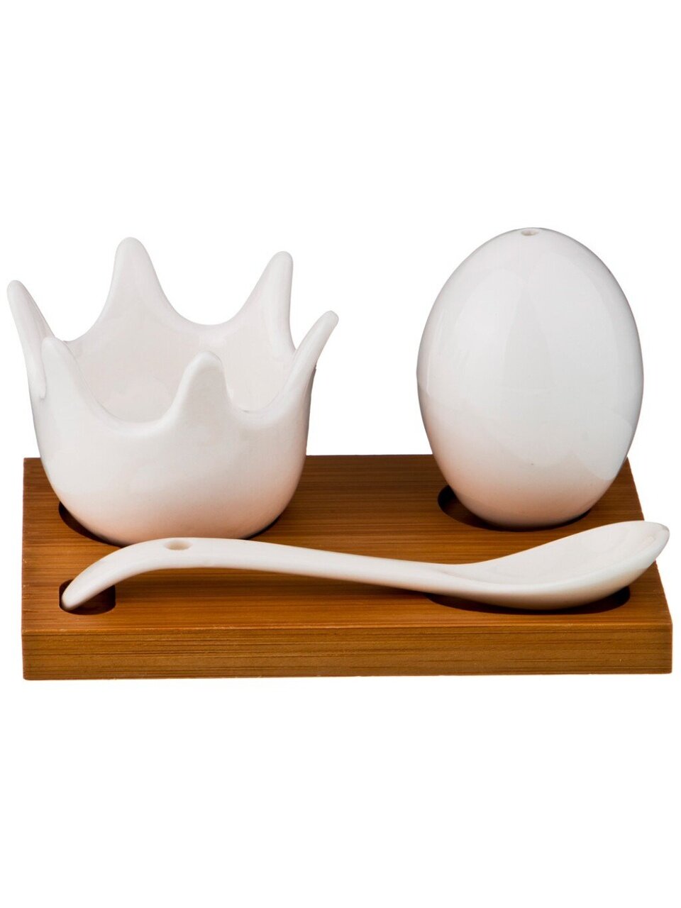 - Функциональность: удобная подставка для яйца, солонка и ложка, которые всегда под рукой.