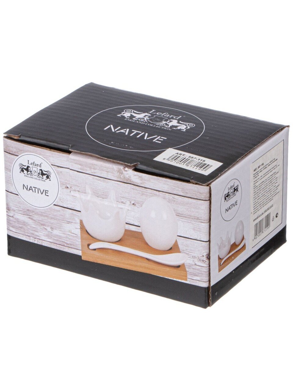 Фарфоровый набор Lefard Native отличается высокой прочностью и долговечностью, что делает его не только красивым, но и практичным приобретением. В комплект входят три предмета: подставка для яйца, солонка и ложка, которые удобно расположены на стильной подставке. Такой набор станет отличным подарком для ценителей качественной посуды и тех, кто любит окружать себя красивыми вещами.