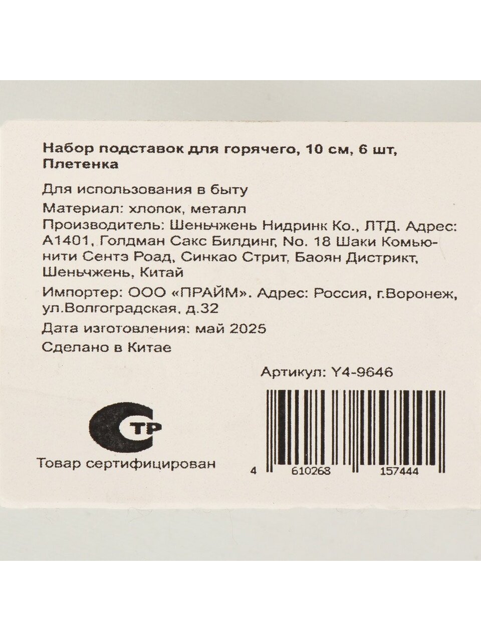Вы можете приобрести «Набор подставок под горячее, 6 шт, круглый, 10 см, Daniks, Плетенка, Y4-9646» и другие товары в нашем интернет-магазине в Железногорске по низким ценам и с бесплатным самовывозом.
