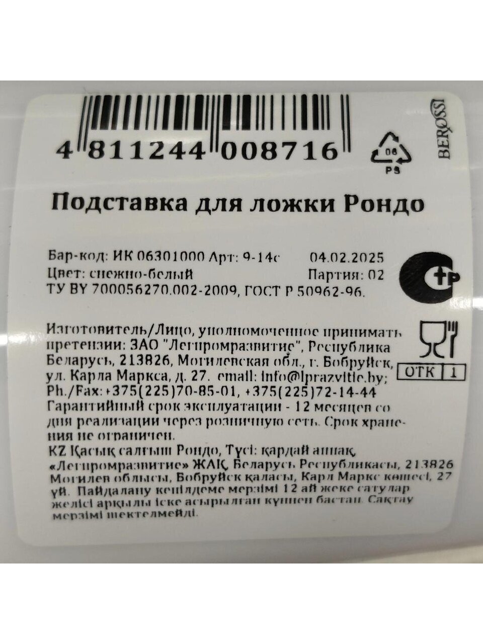 Вы можете приобрести «Подставка для ложки, пластик, снежно-белая, Berossi, Rondo, ИК 06301000» и другие товары в нашем интернет-магазине в Нижнем Новгороде по низким ценам и с бесплатным самовывозом.