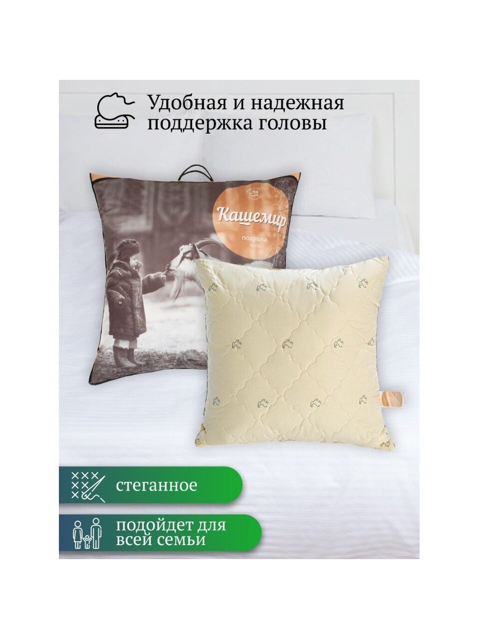 По легкости и теплу кашемиру нет равных в шерстяном мире. Именно этот мягкий пух горных коз используется в качестве наполнителя подушек «Кашемир» из коллекции «Оригинал». Кремовый чехол с логотипом козы простёган и дублирован. Плотная прочная ткань хорошо удерживает наполнитель внутри, чехол не скользит и прослужит очень долго.