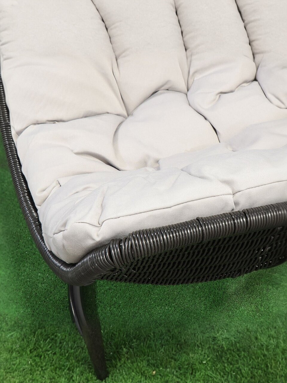 - Мебель выглядит очень утонченно благодаря тонким линиям стального каркаса и тонкому плетеному основанию, но несмотря на хрупкий вид, конструкция очень прочная, устойчива и долговечна.