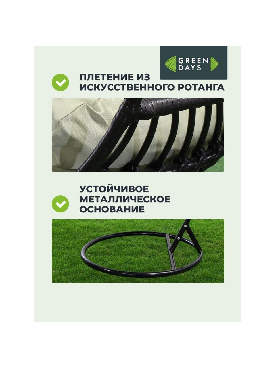 Вы можете приобрести «Качели садовые Кокон, 1-мест, 67х105 см, 150 кг, Green Days, черные, ротанг, подушка оливковая, 19137780» и другие товары в нашем интернет-магазине в Армавире по низким ценам и с бесплатным самовывозом.