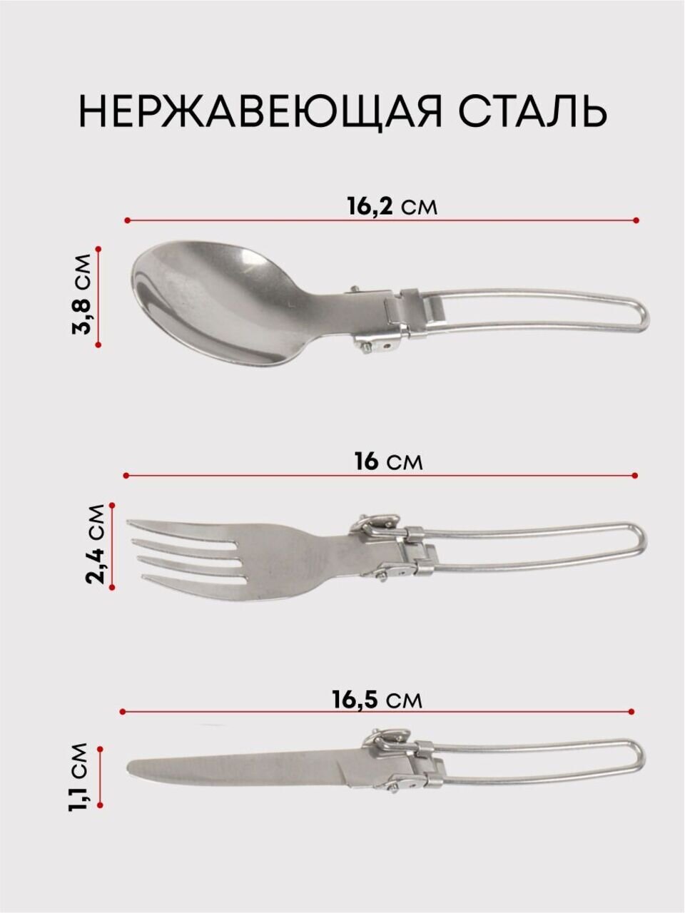 Набор складных столовых приборов - удобная и практичная вещь. Каждый, кто собирал дорожную или походную сумку знает, насколько важна экономия места в пути. Складные приборы занимают минимальный объем и оснащены удобным чехлом для хранения, благодаря которому комплект не испачкается и его будет легко найти в сумке.