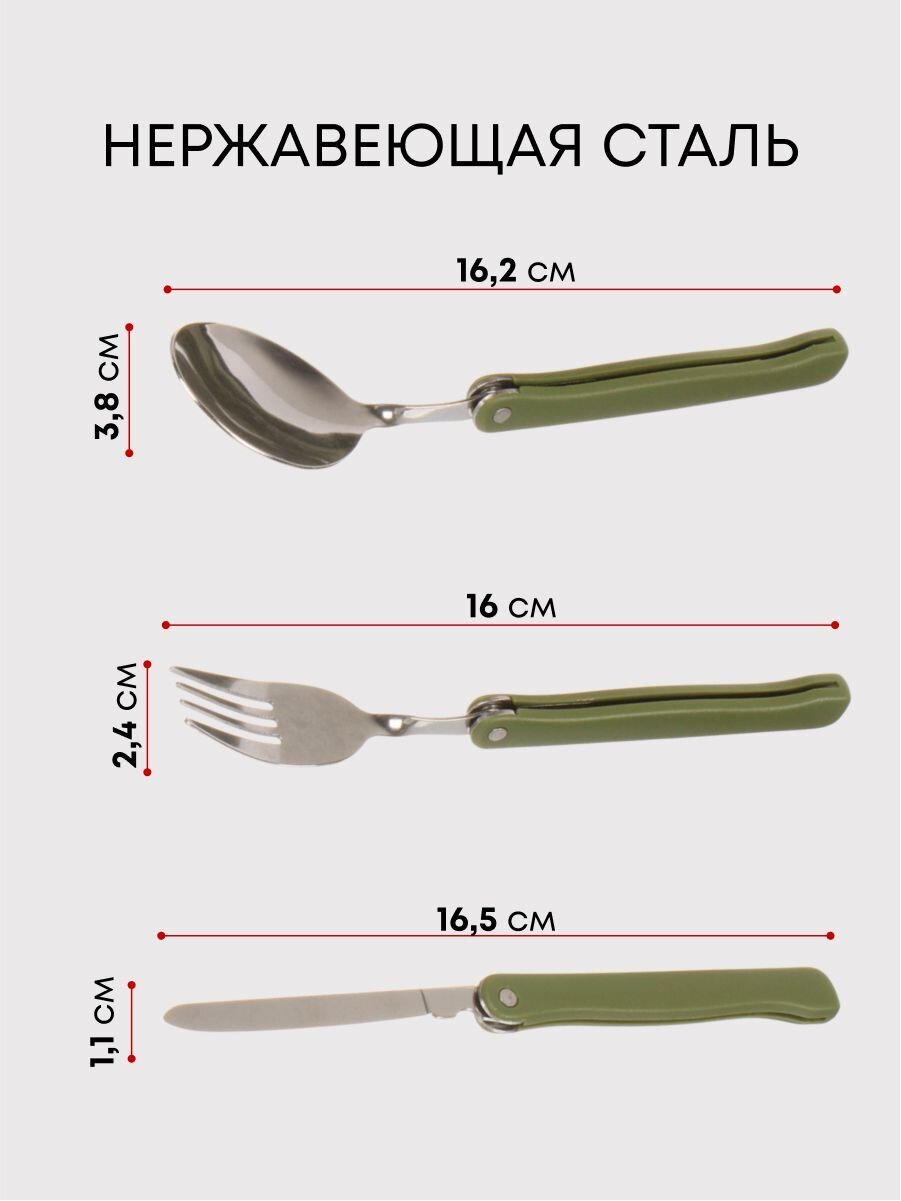Набор складных столовых приборов - удобная и практичная вещь. Каждый, кто собирал дорожную или походную сумку знает, насколько важна экономия места в пути. Складные приборы занимают минимальный объем и оснащены удобным чехлом для хранения, благодаря которому комплект не испачкается и его будет легко найти в сумке.