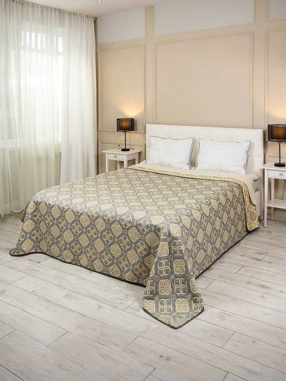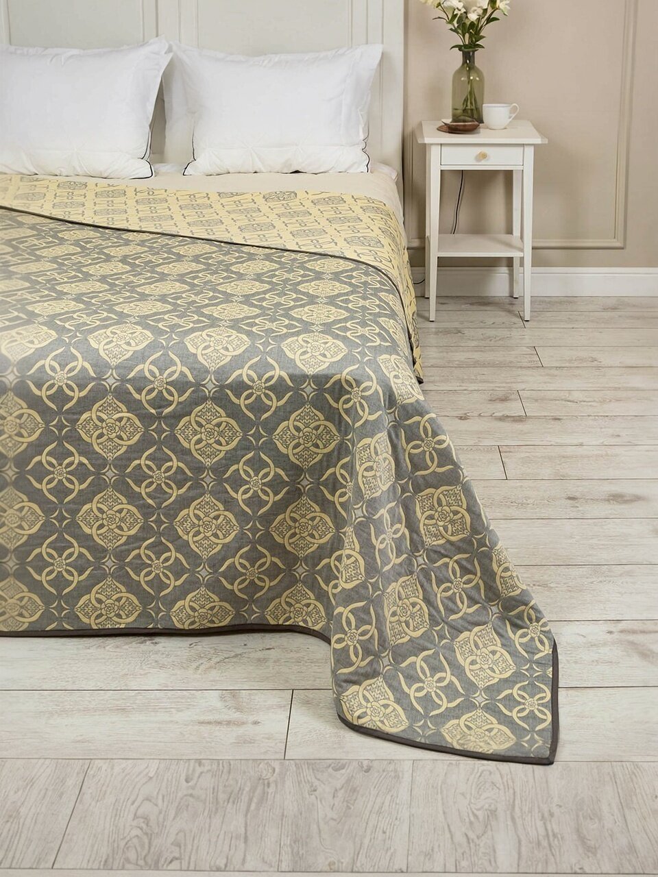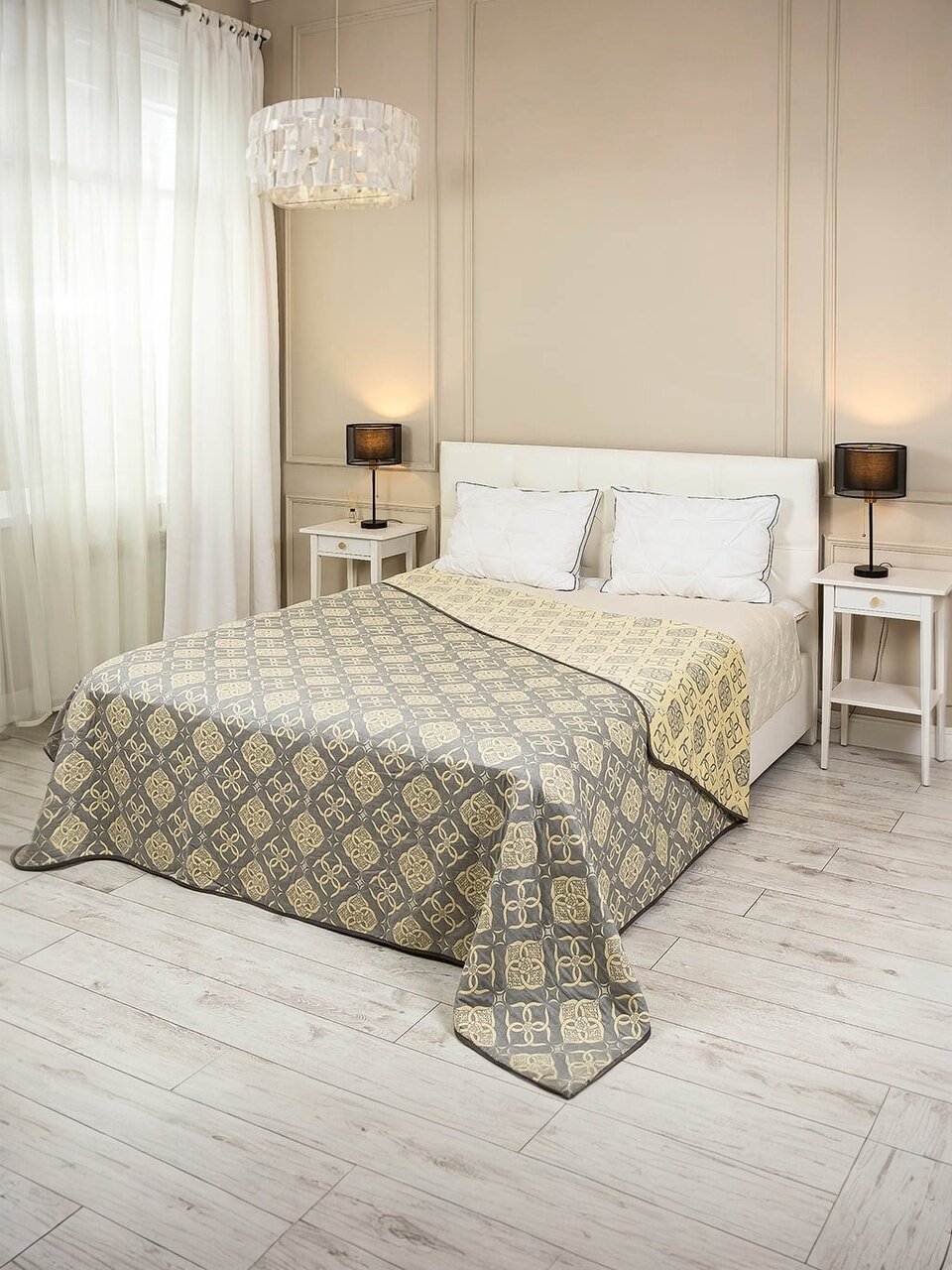 Покрывало Cleo коллекции "MELODY" выполненное в легких пастельных тонах, двухстороннее, без наволочек. Узор на ткани выполнен переплетением нитей.