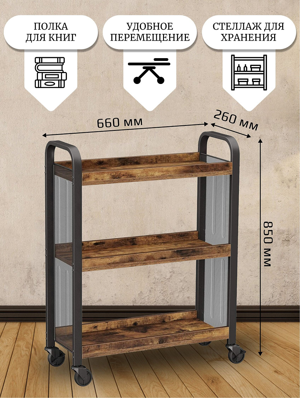 Вы можете приобрести «Полка универсальная, ДСП+сталь, 3 секции, 66х26х85 см, на колесах, коричневый, черная, Лофт, LRC66BX» и другие товары в нашем интернет-магазине в Брянске по низким ценам и с бесплатным самовывозом.