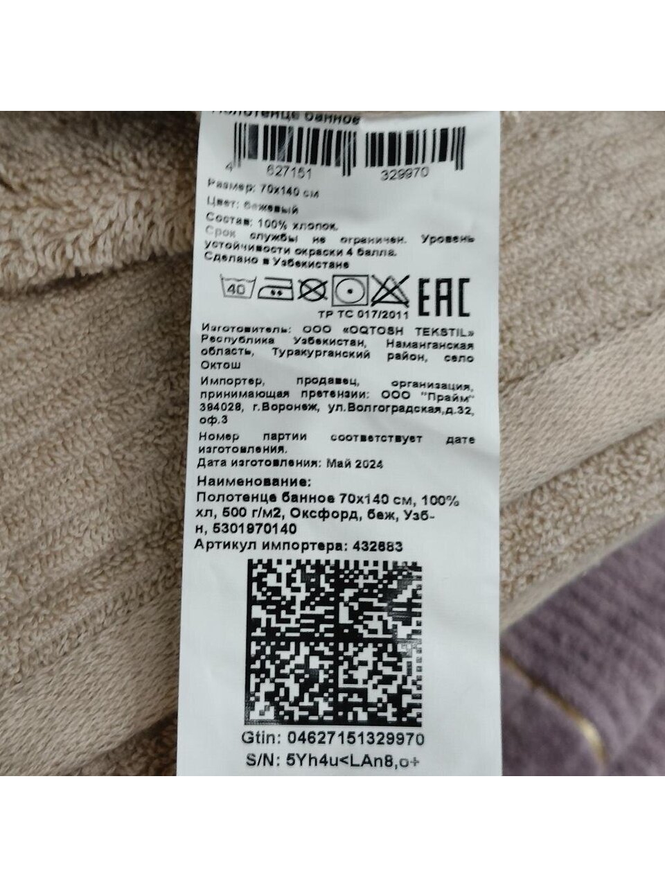 Вы можете приобрести «Полотенце банное 70х140 см, 100% хлопок, 500 г/м2, Оксфорд, бежевое, Узбекистан, 5301970140» и другие товары в нашем интернет-магазине в Железногорске по низким ценам и с бесплатным самовывозом.