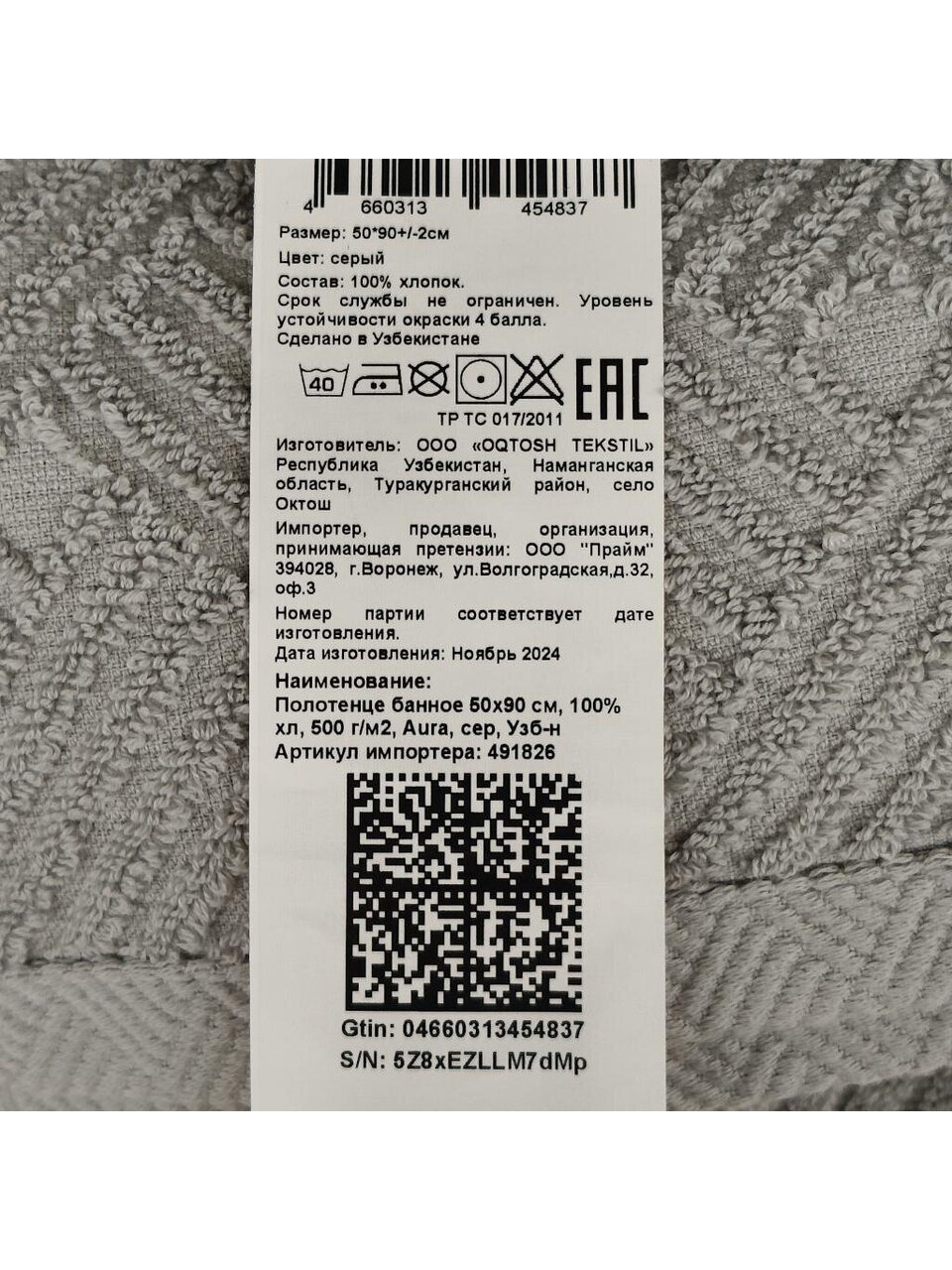 Вы можете приобрести «Полотенце банное 50х90 см, 100% хлопок, 500 г/м2, Аура, серое, Узбекистан» и другие товары в нашем интернет-магазине в Ельце по низким ценам и с бесплатным самовывозом.