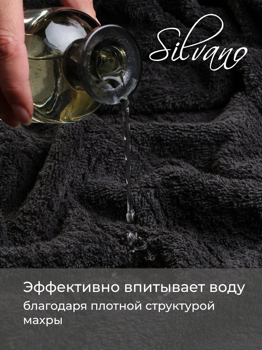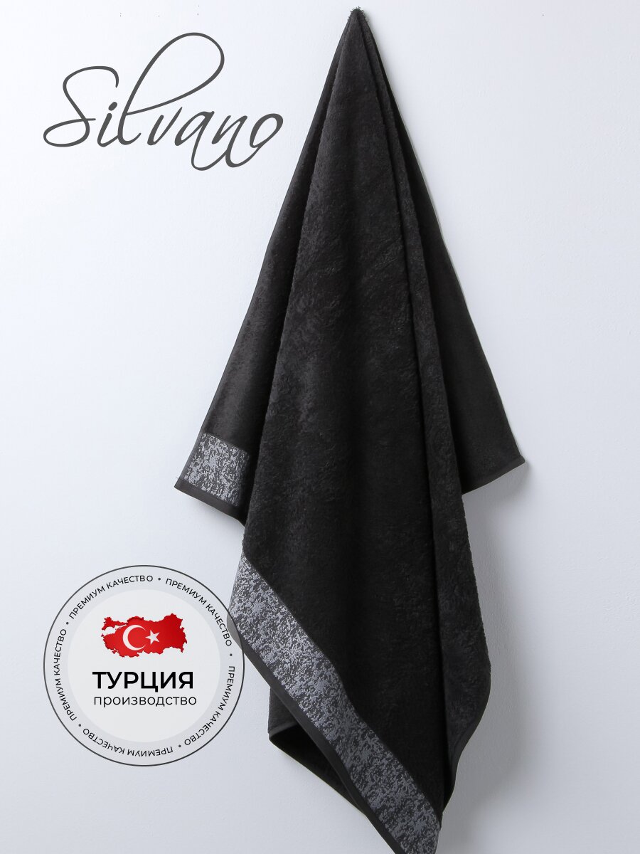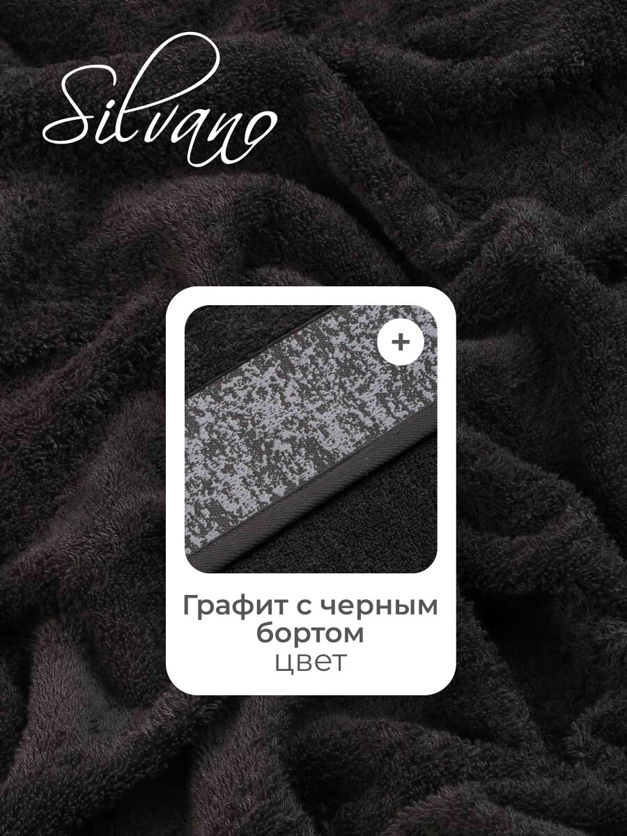 Махровое банное полотенце 100х150 см Silvano: премиум-хлопок 450 г/м², стильный графит — комфорт и долговечность для вашей ванной.