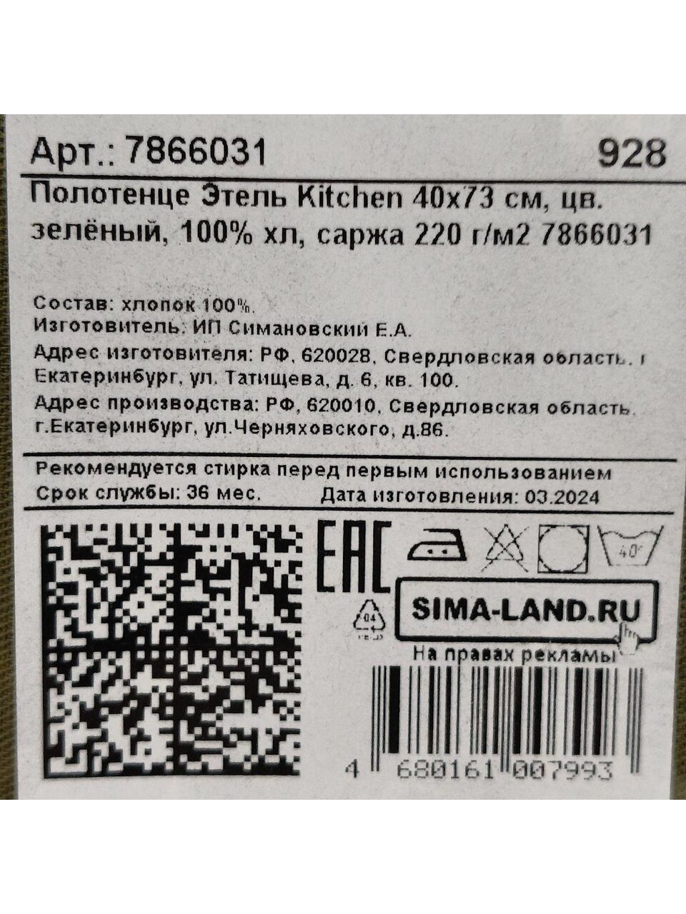 Вы можете приобрести «Полотенце кухонное 40х73 см, 220 г/м2, 100% хлопок, саржа, Этель, Kitchen, зеленое, Россия» и другие товары в нашем интернет-магазине в Таганроге по низким ценам и с бесплатным самовывозом.