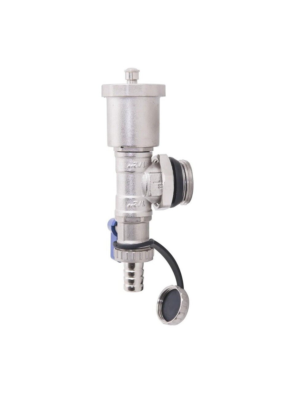 Воздухоотводчик с дренажным вентилем используется для установки и монтажа на коллекторные группы для тёплого пола. Позволяет сбрасывать избыточное давление и воздух из коллекторной группы.