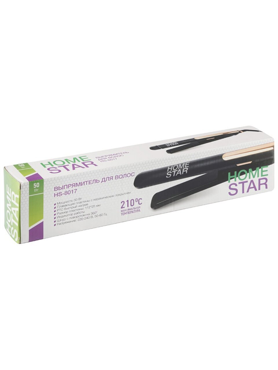 Выпрямитель Homestar, HS-8017, для укладки волос, 50 Вт, керамическое покрытие, индикатор работы, 1 режим, 210 °, 108158