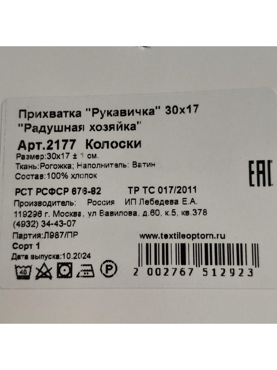 Вы можете приобрести «Прихватка-варежка 30х17 см, рогожка, 100% хлопок, Радушная хозяйка, Колоски, 2177» и другие товары в нашем интернет-магазине в Брянске по низким ценам и с бесплатным самовывозом.