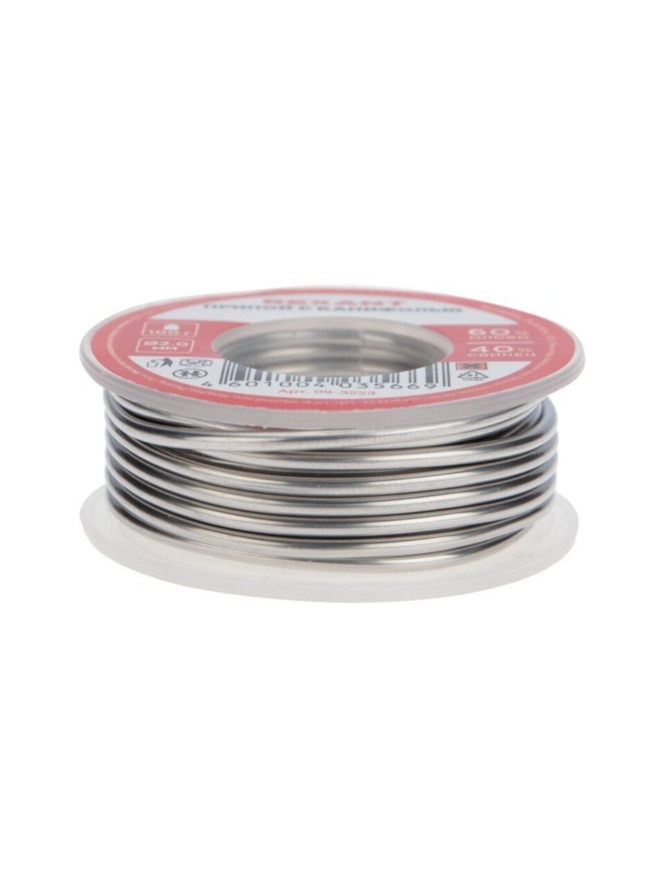 Припой с канифолью Sn40% Pb60% 100г, REXANT d2 мм, катушка 09-3223 — надежное решение для высококачественных пайки и ремонта в домашних условиях. Продукт идеально подходит для выполнения электротехнических работ, монтажа и обслуживания бытовой техники, а также для творчества и мелкого ремонта на даче. Благодаря оптимальному соотношению олова и свинца обеспечивается прочное и долговечное соединение без лишних усилий. Катушка весом 100 грамм удобна в использовании, а диаметр 2 мм делает процесс пайки быстрым и точным. Канифоль в составе облегчает работу, предотвращая окисление и улучшая смачивание поверхности, что особенно важно при работе с различными материалами.