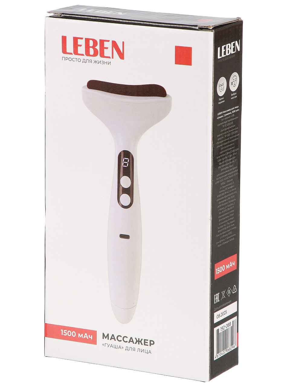 Массажер для лица Leben 7 Вт с функцией гуаша — эффективный уход за кожей дома и в поездках. 2 режима, аккумулятор 1500 мАч, USB-зарядка, гарантия 12 мес.
