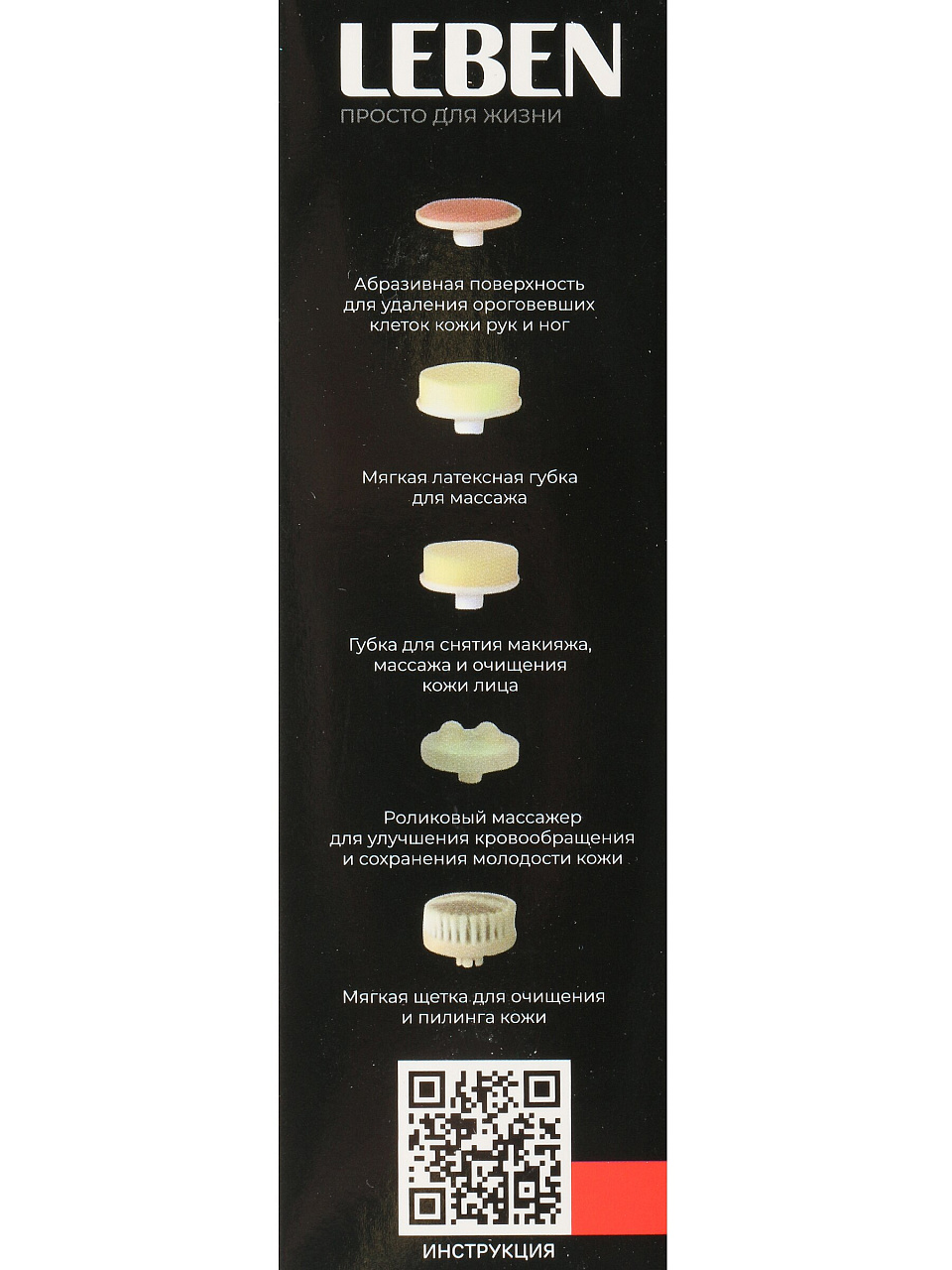Массажер для лица и тела LEBEN — это универсальное решение для тех, кто ищет, какой массажер купить недорого для домашнего и дачного ухода за кожей. В комплекте вы найдете 5 насадок: мягкая для деликатного массажа, спонж для умывания и легкого микропилинга, щетку для глубокого очищения, массажную насадку для стимуляции кровообращения и абразивную поверхность для удаления ороговевших клеток. Благодаря 2 скоростям и питанию от стандартных батареек, устройство подходит для ежедневного использования, а компактный размер делает его идеальным для путешествий.
