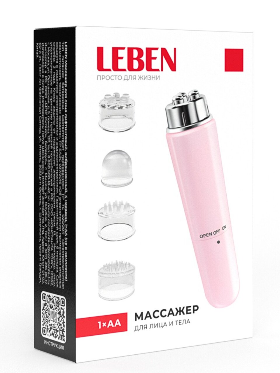 Массажер для лица лифтинговый LEBEN: 4 насадки для комплексного ухода, видимый лифтинг-эффект, экономия времени и бюджета на салонные процедуры.
