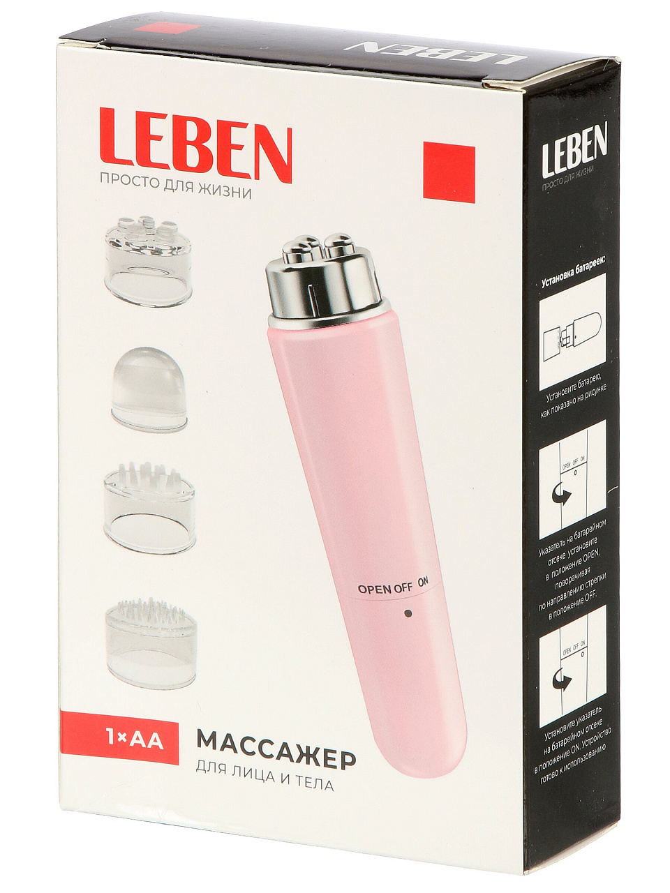 LEBEN с четырьмя насадками подходит для разных задач: лифтинг, очищение, тонизирование и уход за чувствительной кожей. Работает от 1 батарейки AA, прост в эксплуатации, не требует специальных навыков.