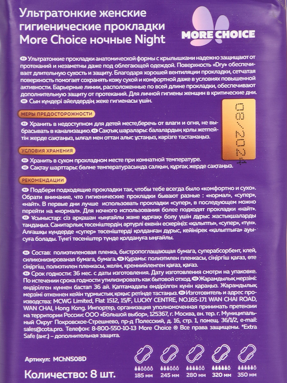 - Ультратонкая технология Night Dry — незаметны даже под облегающей одеждой, но надежно защищают ночью.