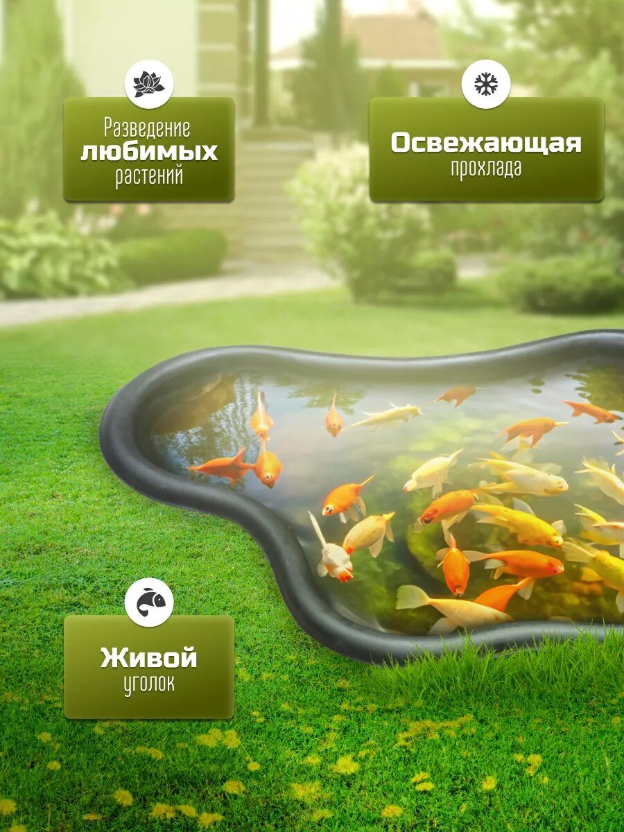 Пруд садовый декоративный Байкал, 150 л, черный от бренда Полимерлист — идеальное решение для создания стильного и уютного пространства на даче или приусадебном участке. Компактный размер позволяет гармонично вписать изделие даже в небольшой сад, придавая ландшафту оригинальный и современный вид. Черный цвет подчеркивает элегантность и универсальность конструкции, делая пруд отличным акцентом среди зелени и цветущих растений.