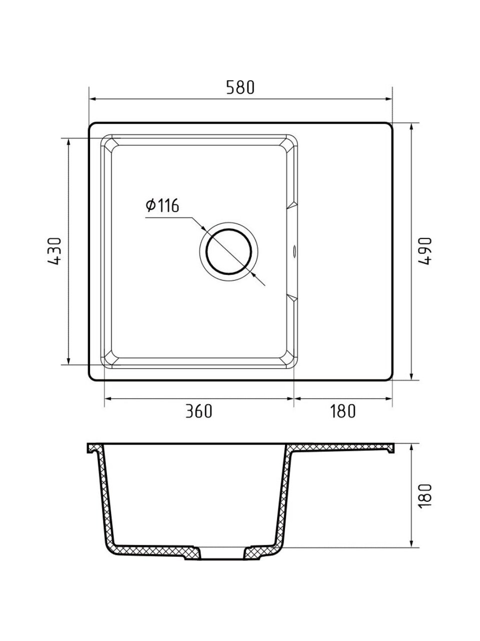 - Общий размер: 580х490 мм;