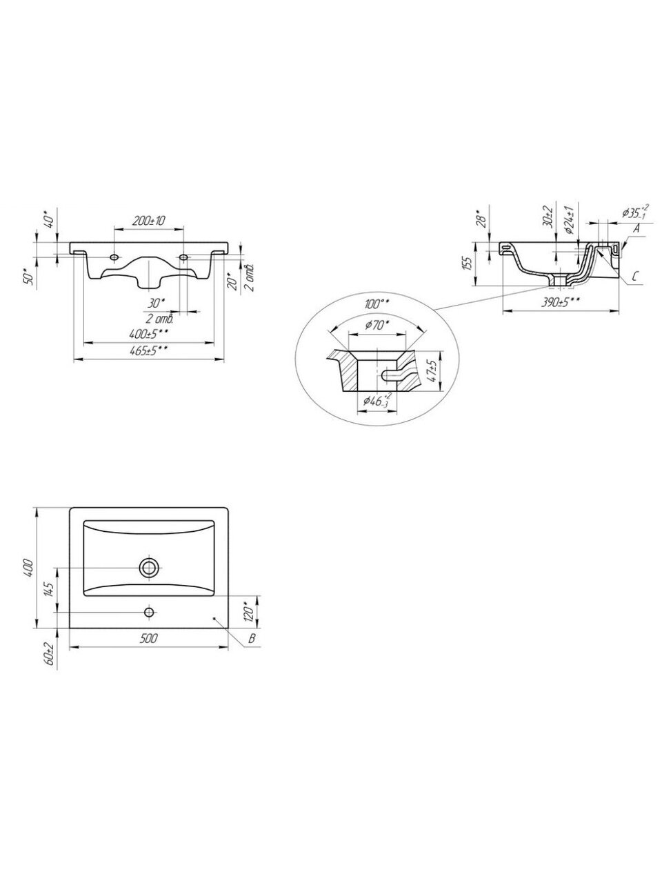 Умывальник мебельный, Cersanit, Como 50, фарфор