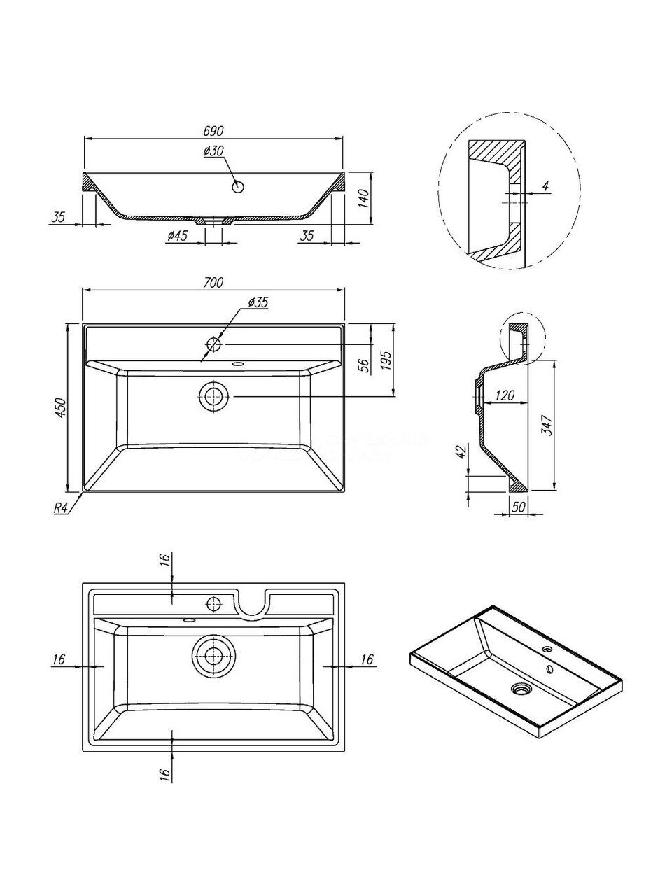 Умывальник мебельный Астория 70, литьевой мрамор, Florentina