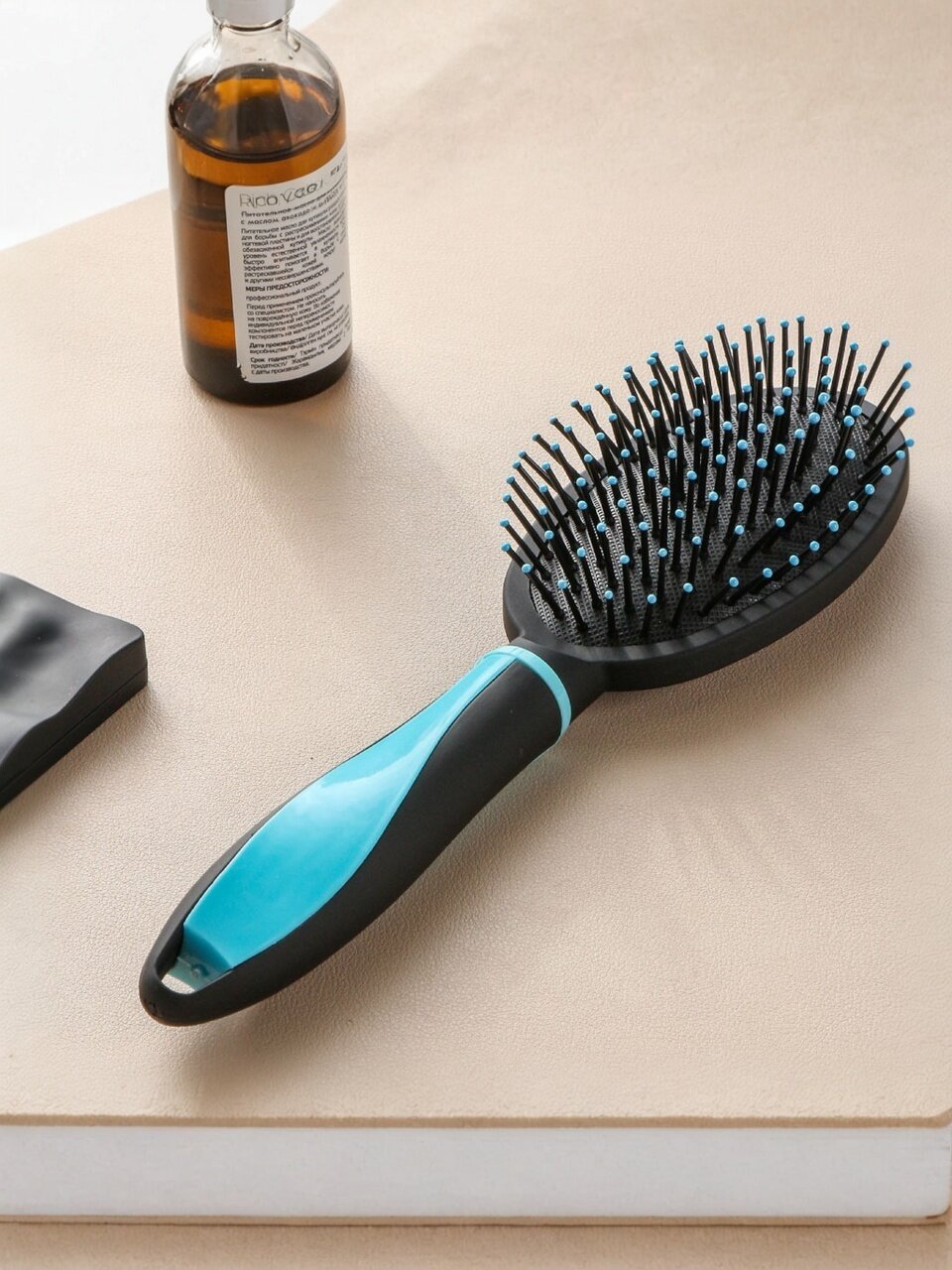 Массажная расческа 24х6,5 см овальная голубая — деликатный уход за волосами без спутывания и ломкости, идеальна для ежедневного массажа кожи головы.