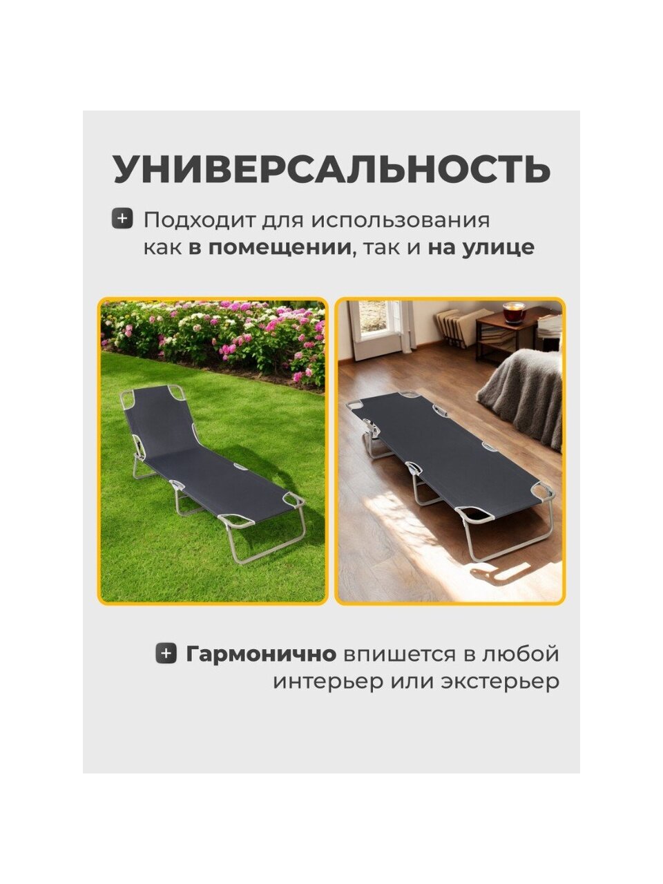 - Эстетичный дизайн: Черный цвет раскладушки гармонично впишется в любой интерьер или экстерьер, добавляя стиль и элегантность.