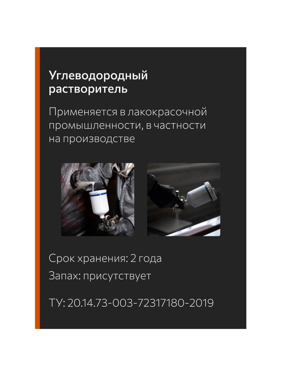 Предназначен для разбавления масляных, алкидных, алкидно-фенольных лаков, красок, эмалей, а также для разбавления масел, битумов, каучуков, меламиноалкидных ЛКМ. Гарантийный срок хранения: 1 год.