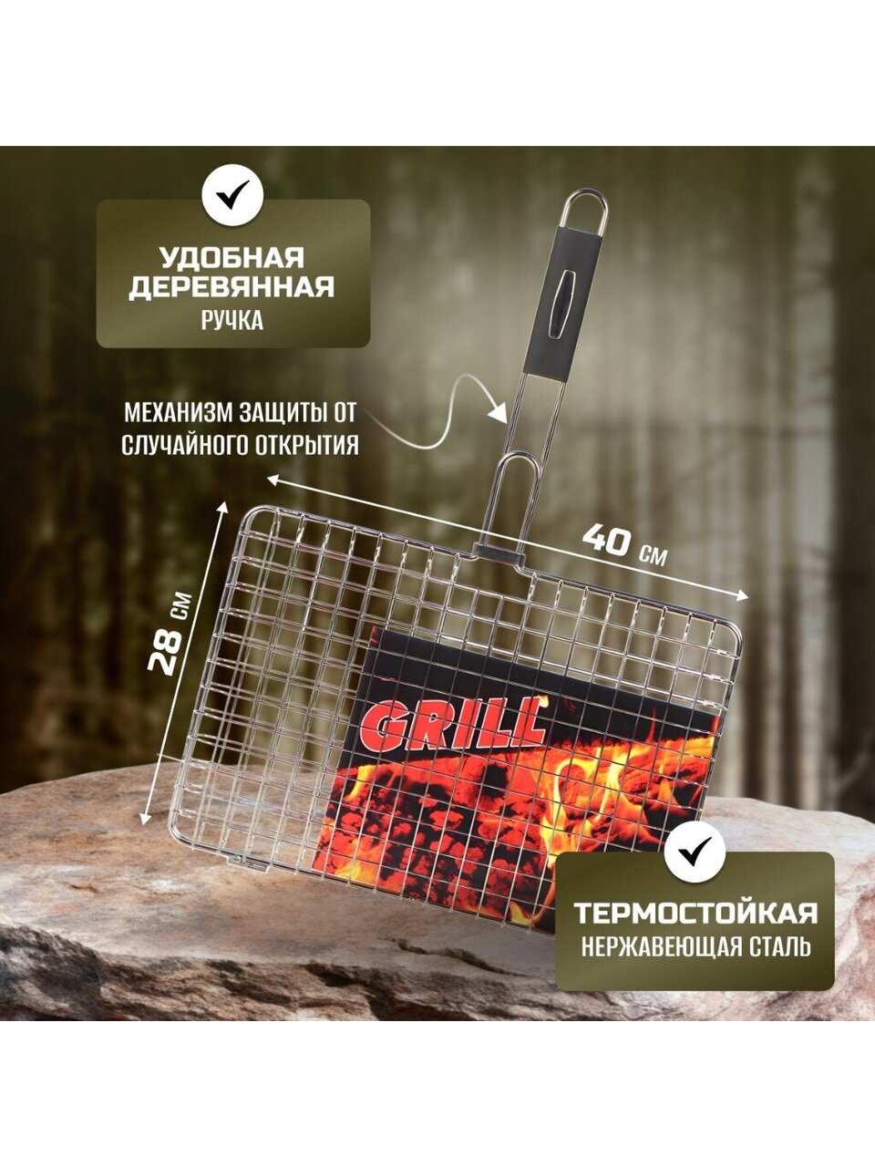 - Высота решетки без ручки: 28 см.