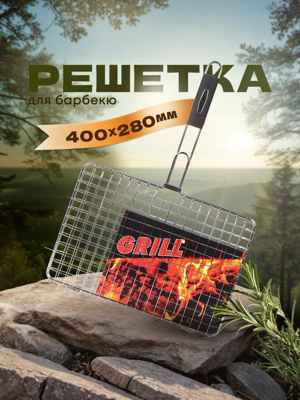 Решетка для барбекю легкая и компактная. Ее удобно брать с собой на пикник или в поход.