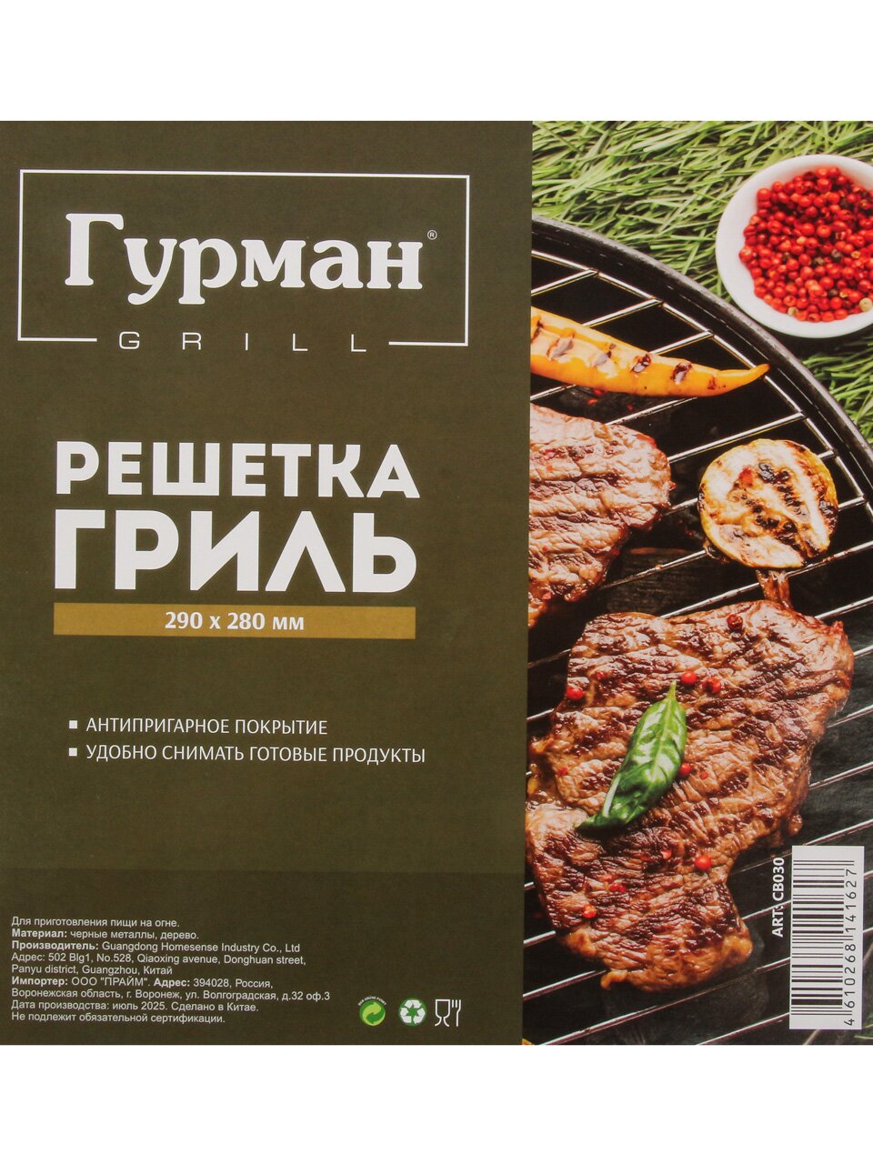 Решетка барбекю 290х280 мм Гурман — для сочного гриля без прилипания: надёжная сталь, универсальный размер, легко мыть, идеальна для пикника и дачи.