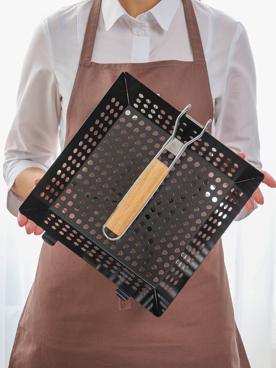 В отличие от аналогов с тонкими прутьями, эта модель сохраняет форму и не прогибается под весом продуктов. Если вы ищете, что лучше для приготовления шашлыка, рыбы или овощей на огне — решетка Гурман обеспечивает равномерный прогрев и предотвращает прилипание пищи. Как использовать решетку барбекю? Просто уложите продукты, зафиксируйте специальным зажимом и жарьте на углях — удобная ручка не нагревается и облегчает переворачивание.