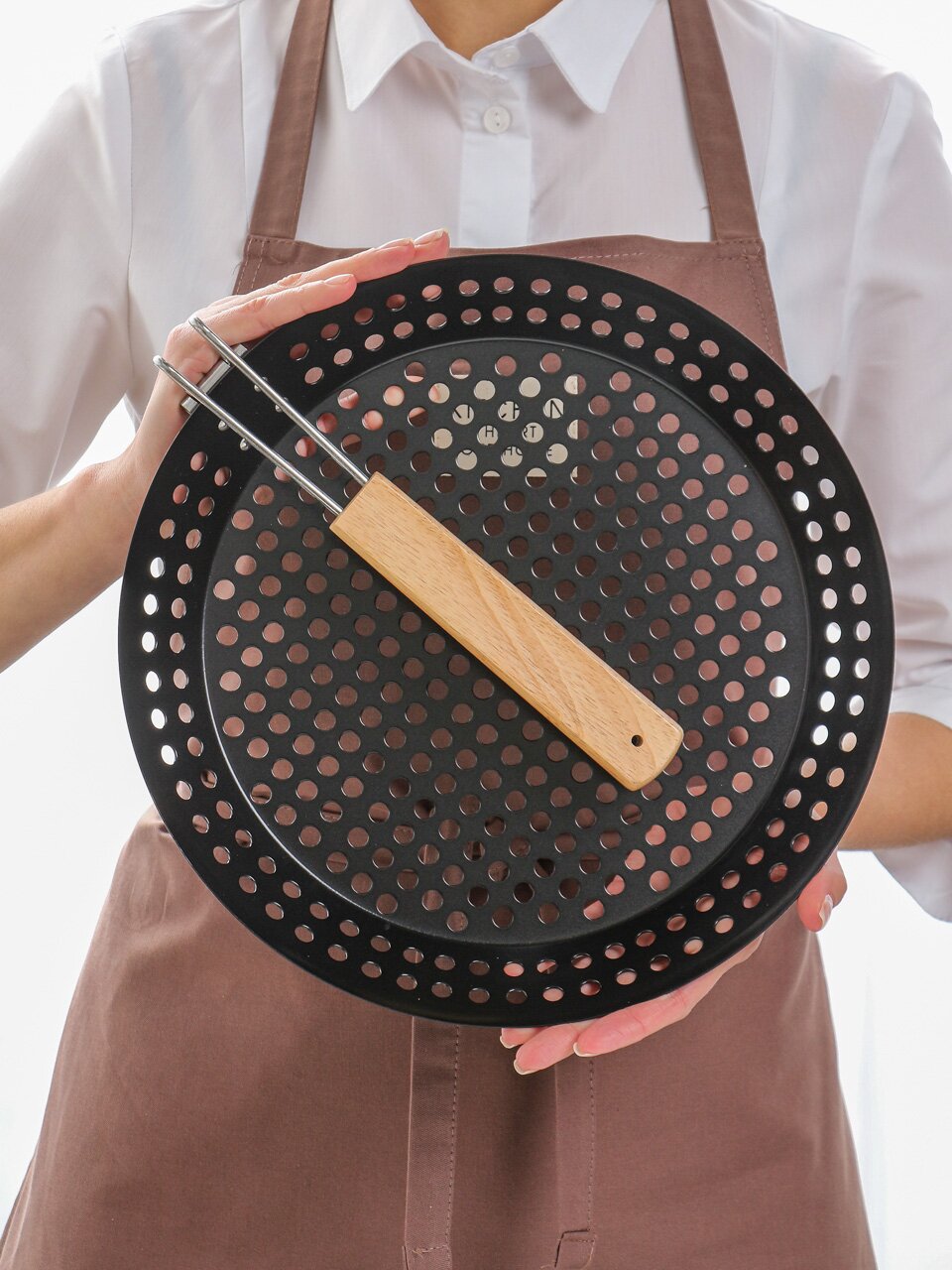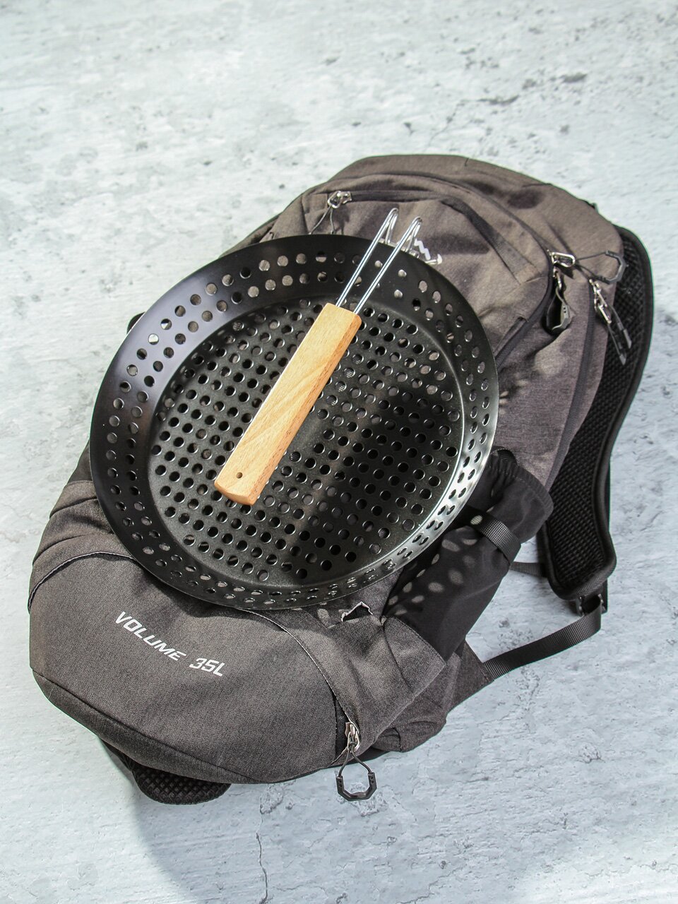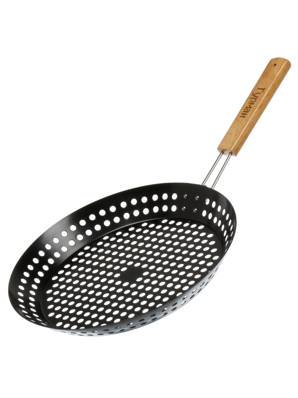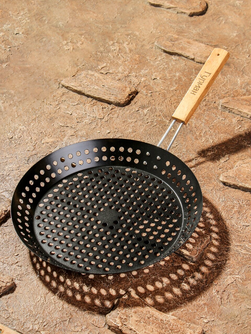 Решетка позволяет быстро и равномерно прожарить мясо, рыбу или овощи, не допуская пригорания. Деревянная ручка защищает от ожогов, а оптимальный размер подходит для компании из 3-5 человек.