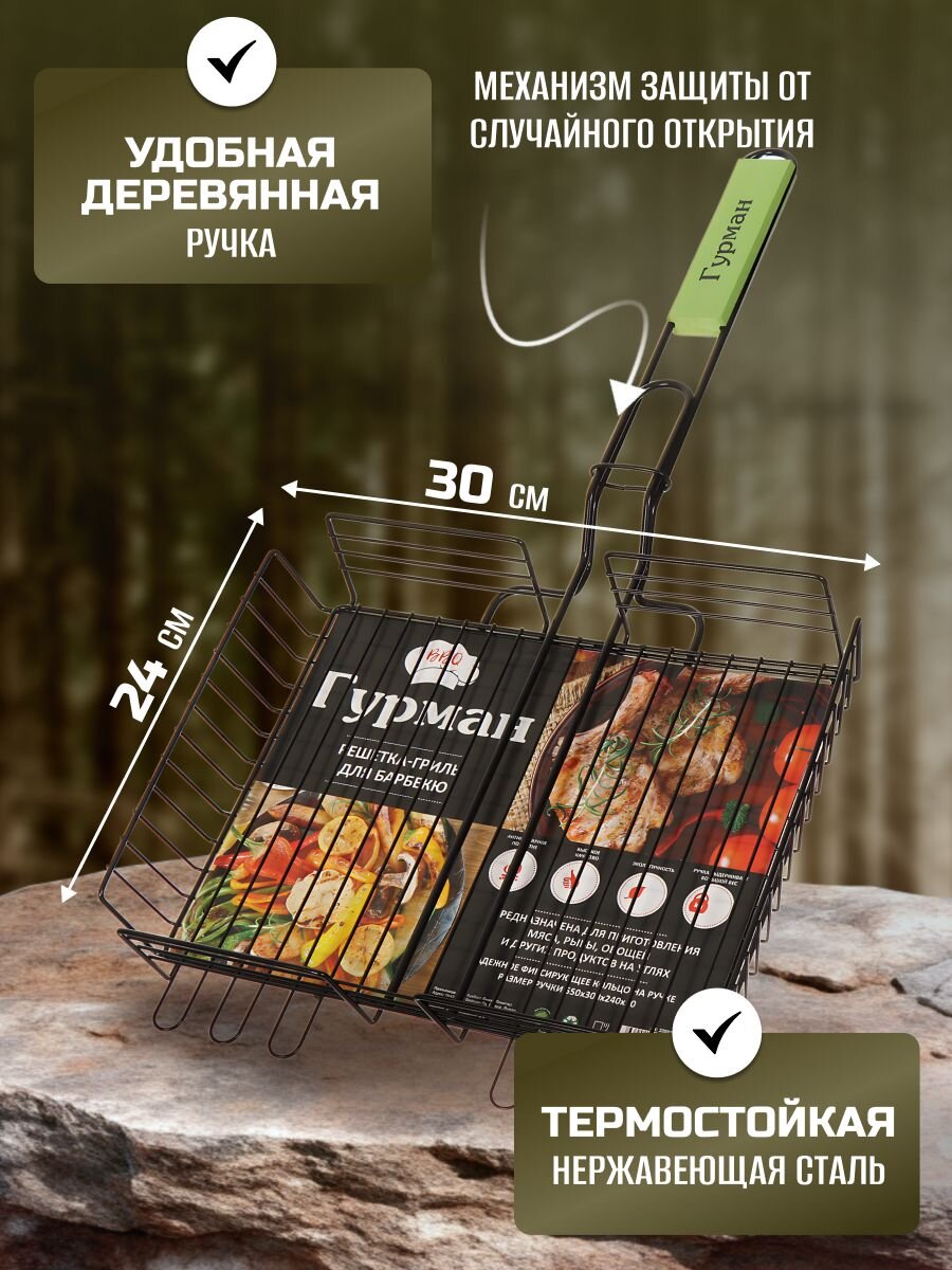 Вы можете приобрести «Решетка барбекю 300х240х50 мм, Гурман, Люкс, сталь, антипригарное покрытие, рукоятка дерево, 22002NS-enf» и другие товары в нашем интернет-магазине в Клинцах по низким ценам и с бесплатным самовывозом.