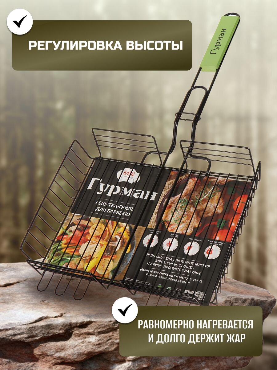 Решетка для барбекю Гурман Люкс легкая и компактная. Ее удобно брать с собой на пикник или в поход.