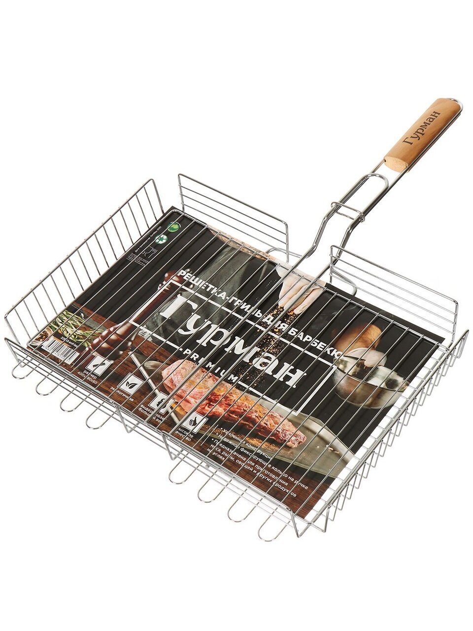 Вы можете приобрести «Решетка барбекю 400х280х60 мм, Гурман, Люкс, хром, сталь, рукоятка дерево, 22003-enf-lac» и другие товары в нашем интернет-магазине в Смоленске по низким ценам и с бесплатным самовывозом.