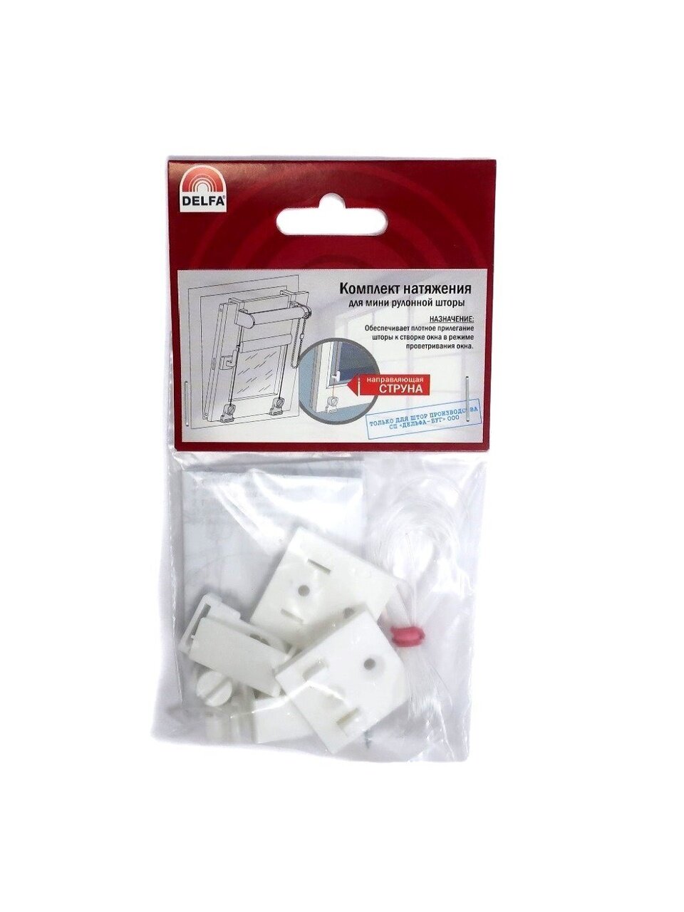 Комплект натяжения для мини рулонной шторы. Поставляется в индивидуальной упаковке. Применяется в качестве запасных комплектующих для мини рулонных штор, а так же для самостоятельного оснащения рулонных штор при их установке на поворотно-откидные окна. Комплект натяжения обеспечивает плотное прилегание шторы к створке окна в режиме проветривания окна.
