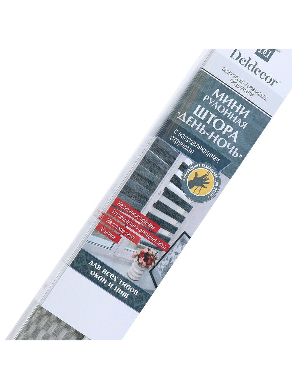 Мини рулонная штора "День-Ночь", коллекция "МАСО". Изделие поставляется в индивидуальной блистерной упаковке. Тип ткани: гладкокрашенная, с нанесением объёмного рисунка.