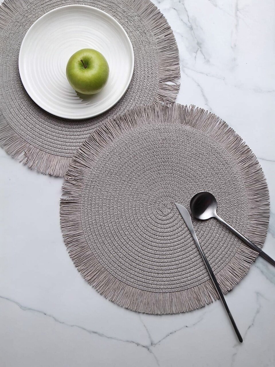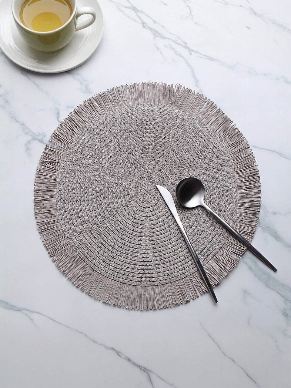 Салфетка сервировочная полимер, 38 см, круглая, бахрома, Y4-9664 — стильное решение для сервировки стола. Оригинальный дизайн с бахромой подчеркнет индивидуальность интерьера и добавит уюта. Практичный материал легко очищается и сохраняет привлекательный вид. Идеальный выбор для кухни, гостиной, дачи.