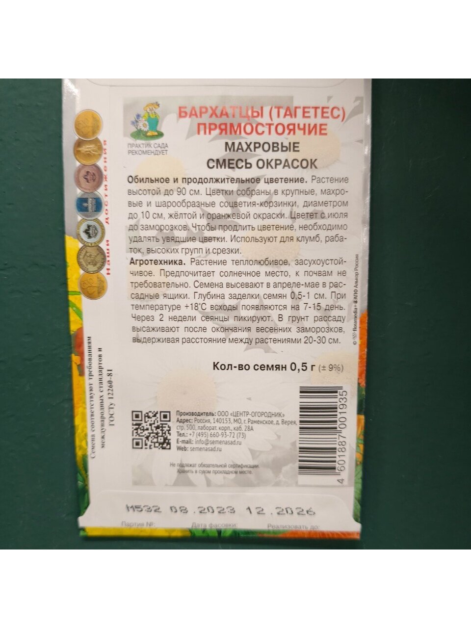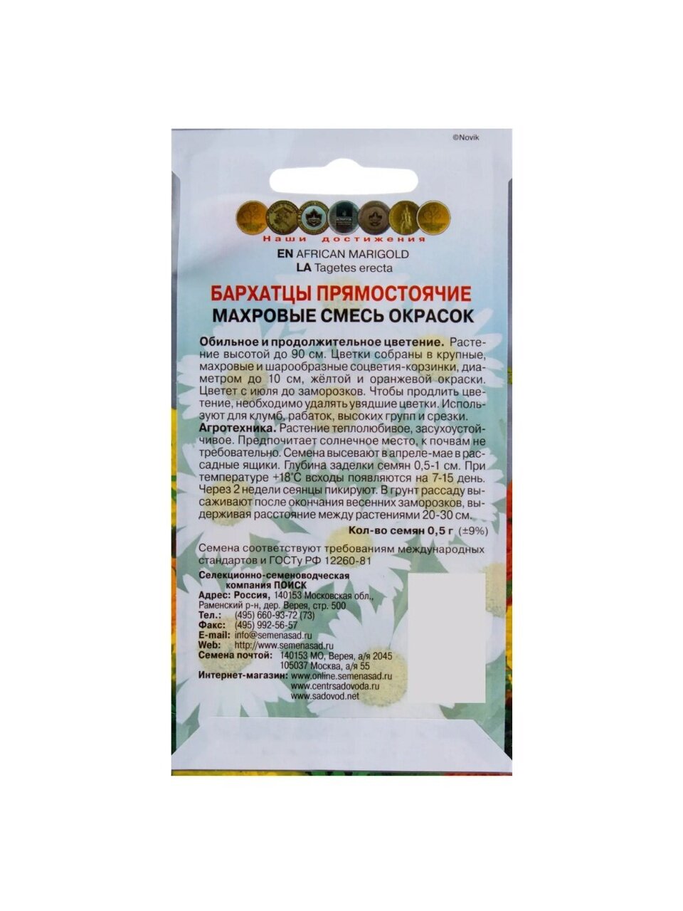 Вы можете приобрести «Семена Цветы, Бархатцы, 0.5 г, прямостоячие махровые, смесь окрасок, цветная упаковка, Поиск» и другие товары в нашем интернет-магазине в Краснодаре по низким ценам и с бесплатным самовывозом.