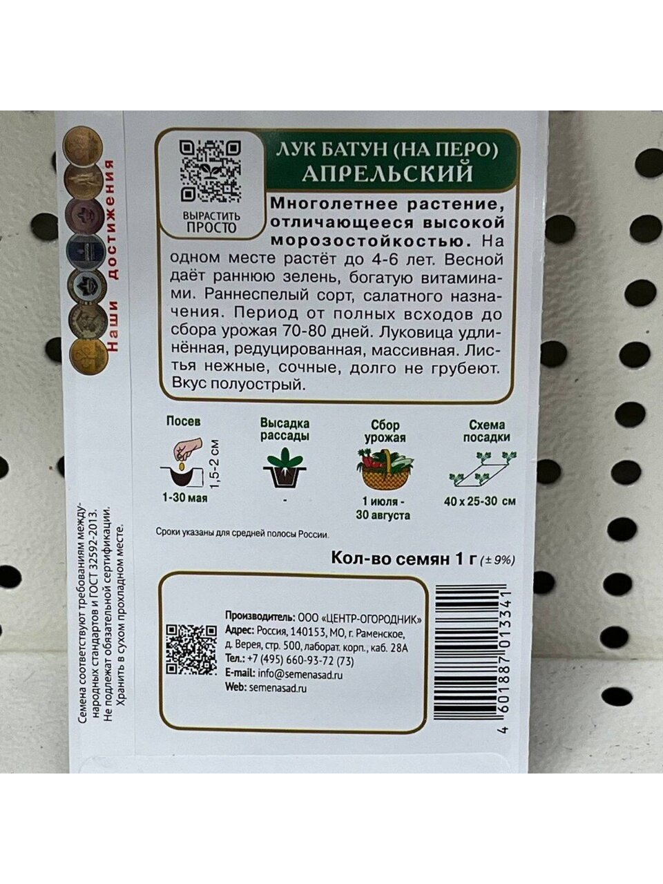 Вы можете приобрести «Семена Лук батун, Апрельский, 1 г, цветная упаковка, Поиск» и другие товары в нашем интернет-магазине в Борисоглебске по низким ценам и с бесплатным самовывозом.