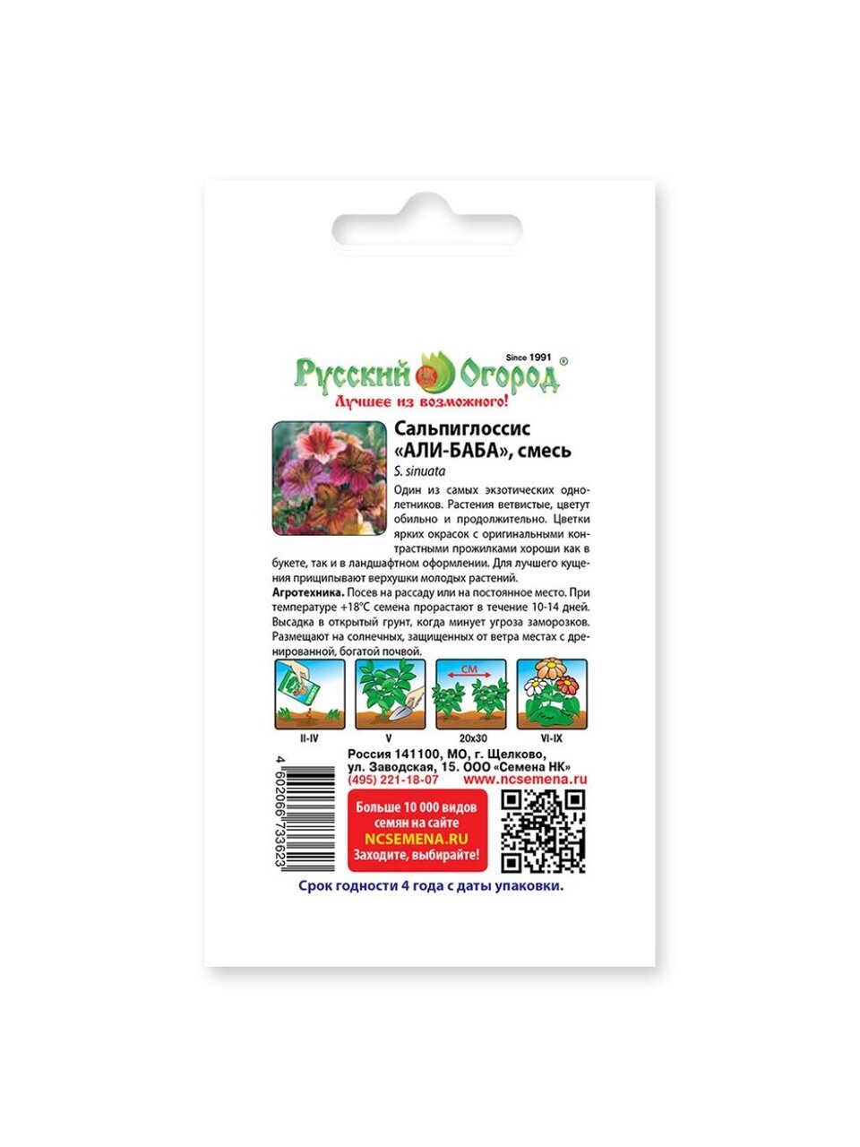 Вы можете приобрести «Семена Цветы, Сальпиглоссис, Али-Баба, 0.1 г, цветная упаковка, Русский огород» и другие товары в нашем интернет-магазине в Казани по низким ценам и с бесплатным самовывозом.