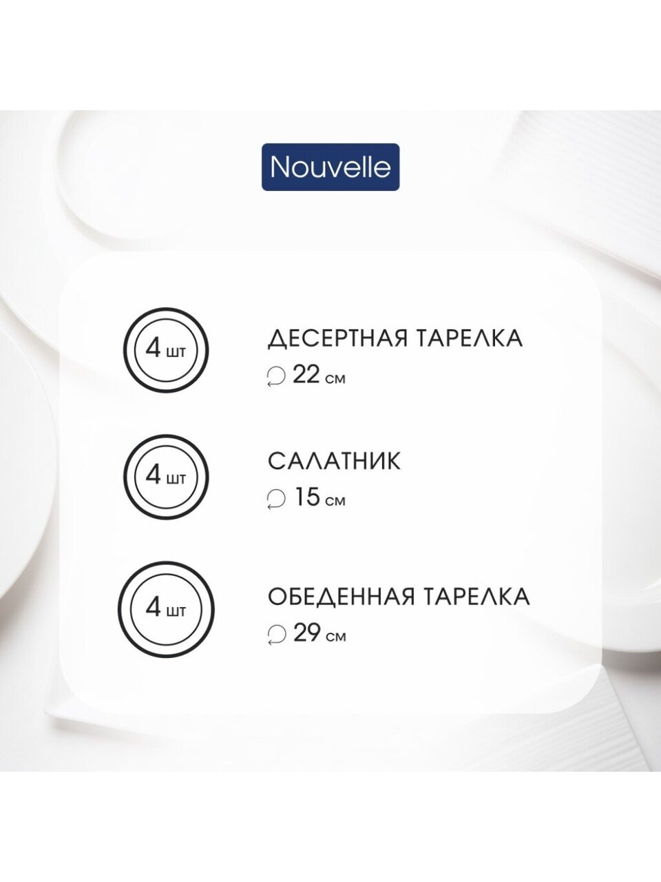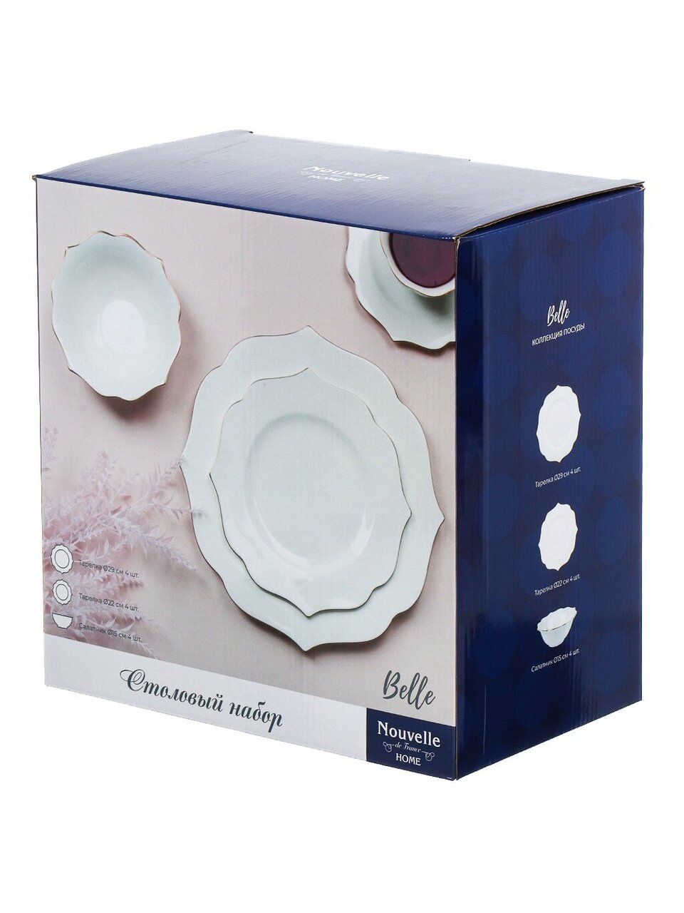 Сервиз столовый фарфор Belle на 4 персоны — 12 предметов для стильной сервировки и уютных семейных ужинов. Идеальный подарок в подарочной упаковке.