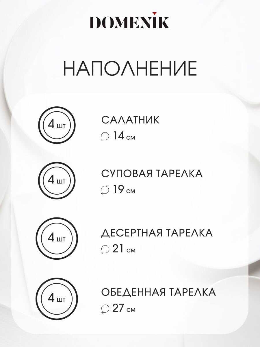 - Прочный фарфор: 16 предметов, рассчитанных на 4 персоны, устойчив к царапинам и сколам