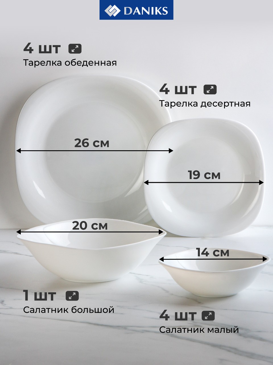 Столовый сервиз Daniks Белый Квадро на 4 персоны: 13 предметов из стеклокерамики — современный выбор для стильной сервировки и ежедневного комфорта.