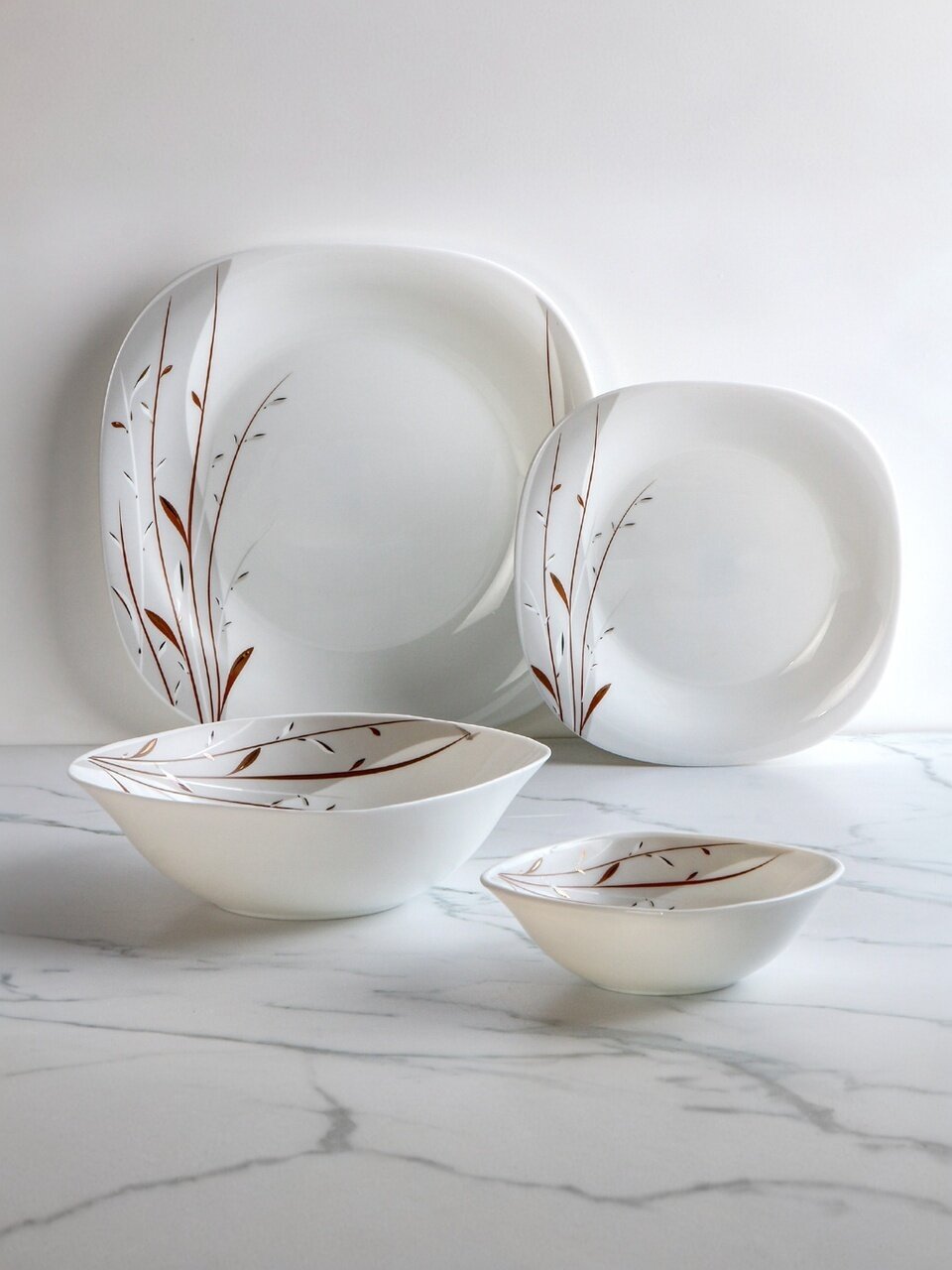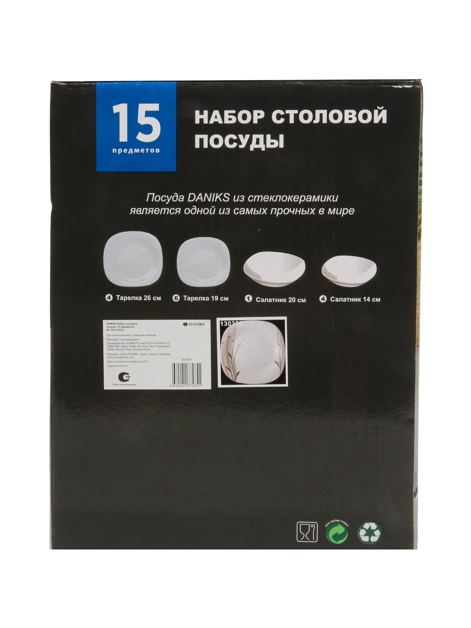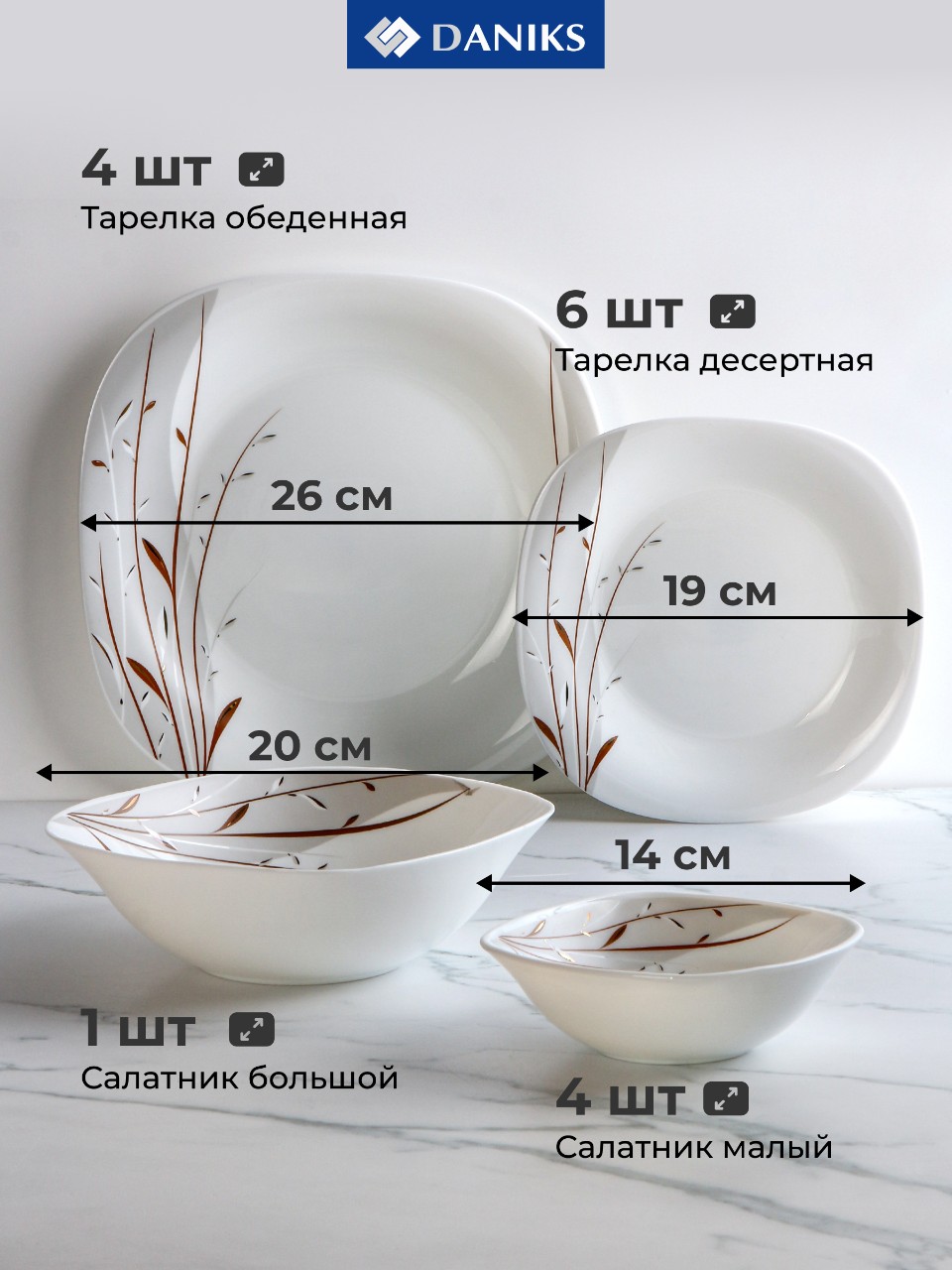 Столовый сервиз из стеклокерамики Daniks Орфей на 4 персоны — 15 предметов для стильной сервировки дома или дачи. Белый цвет, подходит для СВЧ и посудомоечной машины.