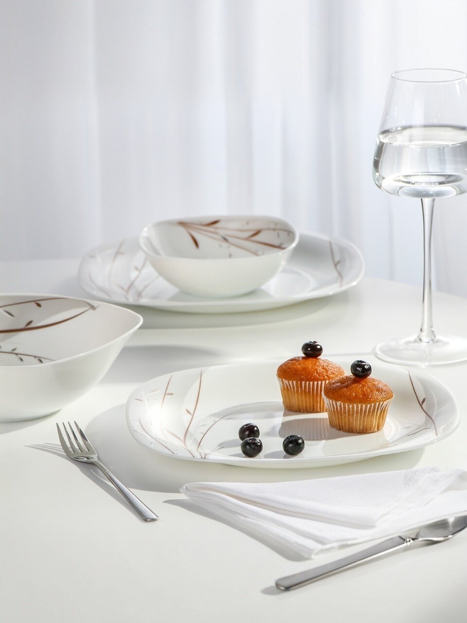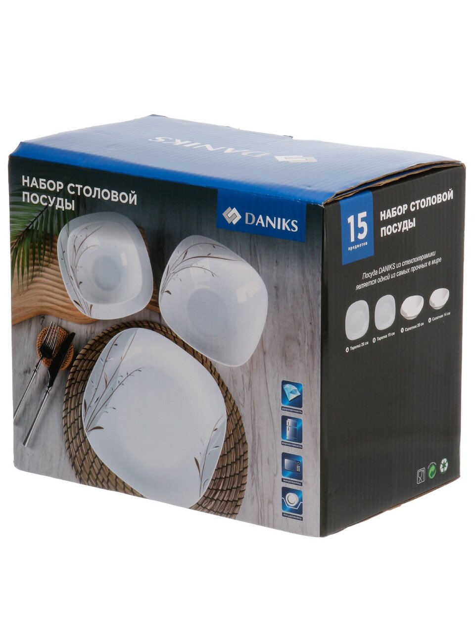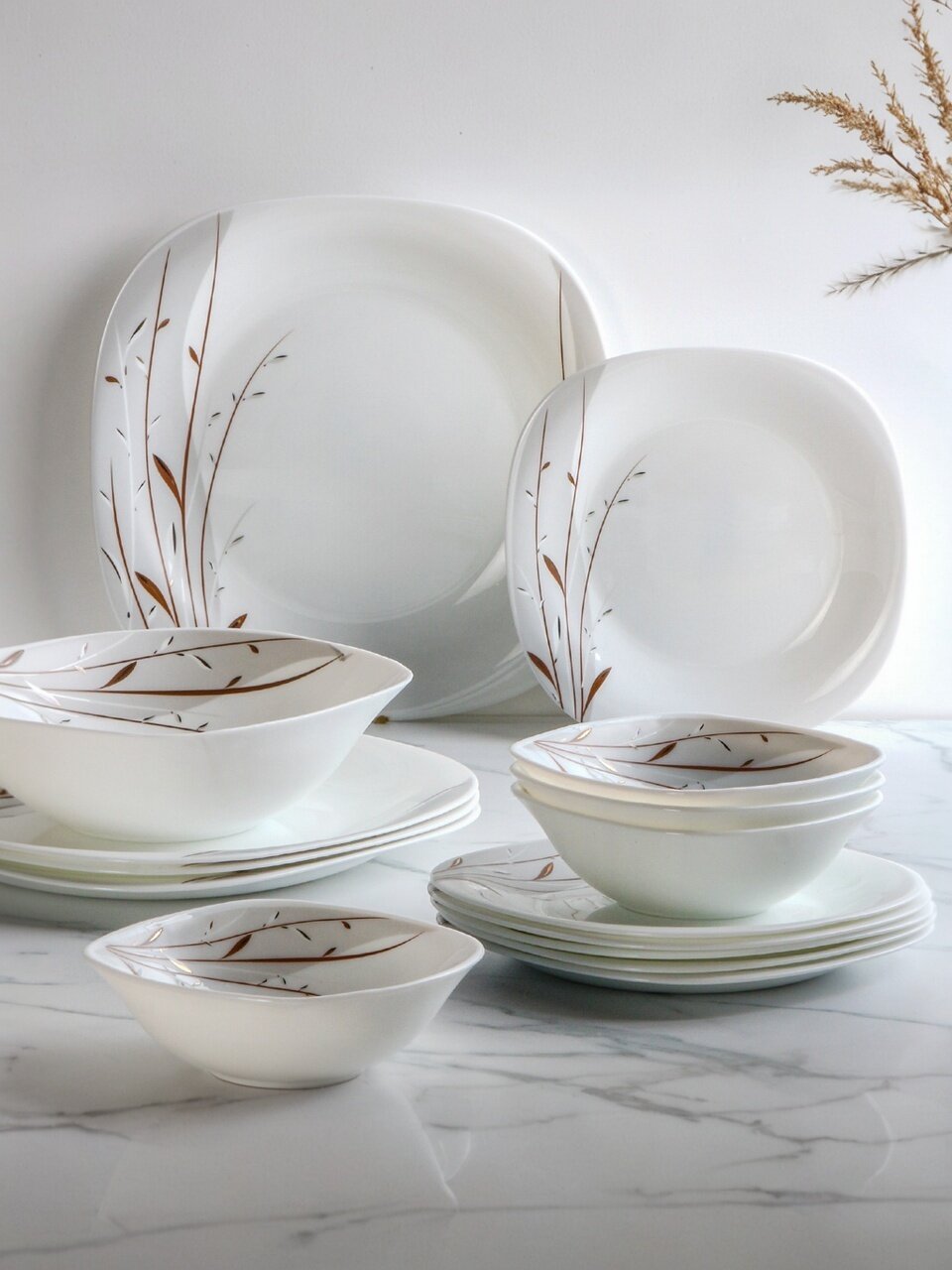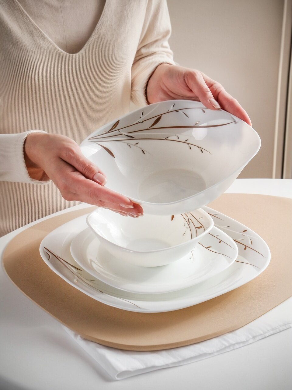 Столовый сервиз из стеклокерамики Daniks Орфей на 4 персоны — 15 предметов для стильной сервировки дома или дачи. Белый цвет, подходит для СВЧ и посудомоечной машины.